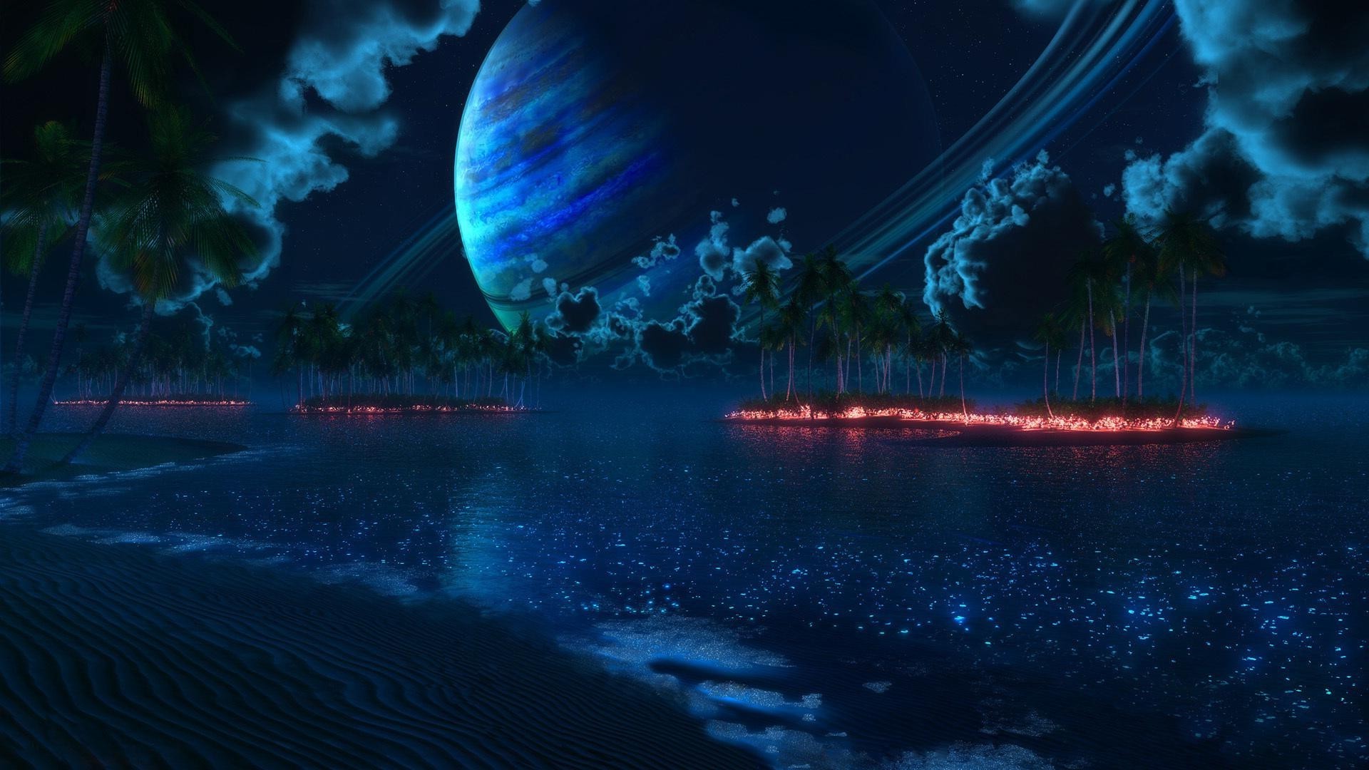 Saturno sullo sfondo del mare sul pianeta
