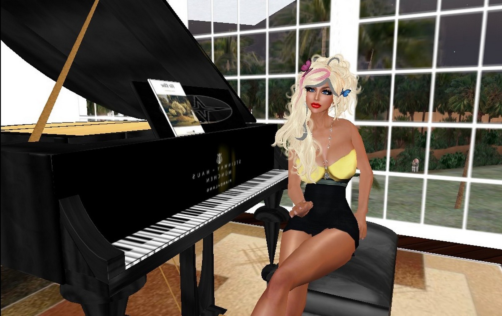 Visualizzazione. Ragazza seduta al pianoforte
