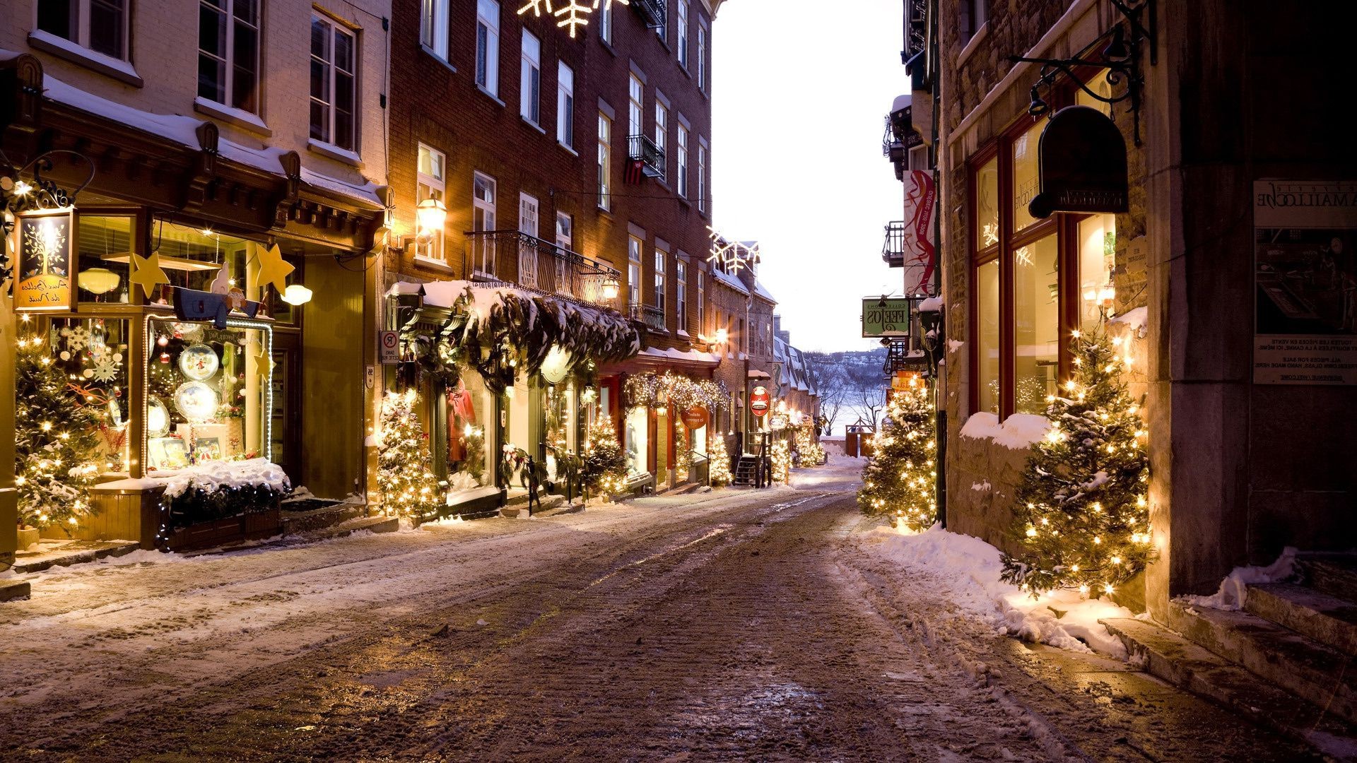 Strada vicolo strada case inverno alberi di Natale nuovo anno Natale