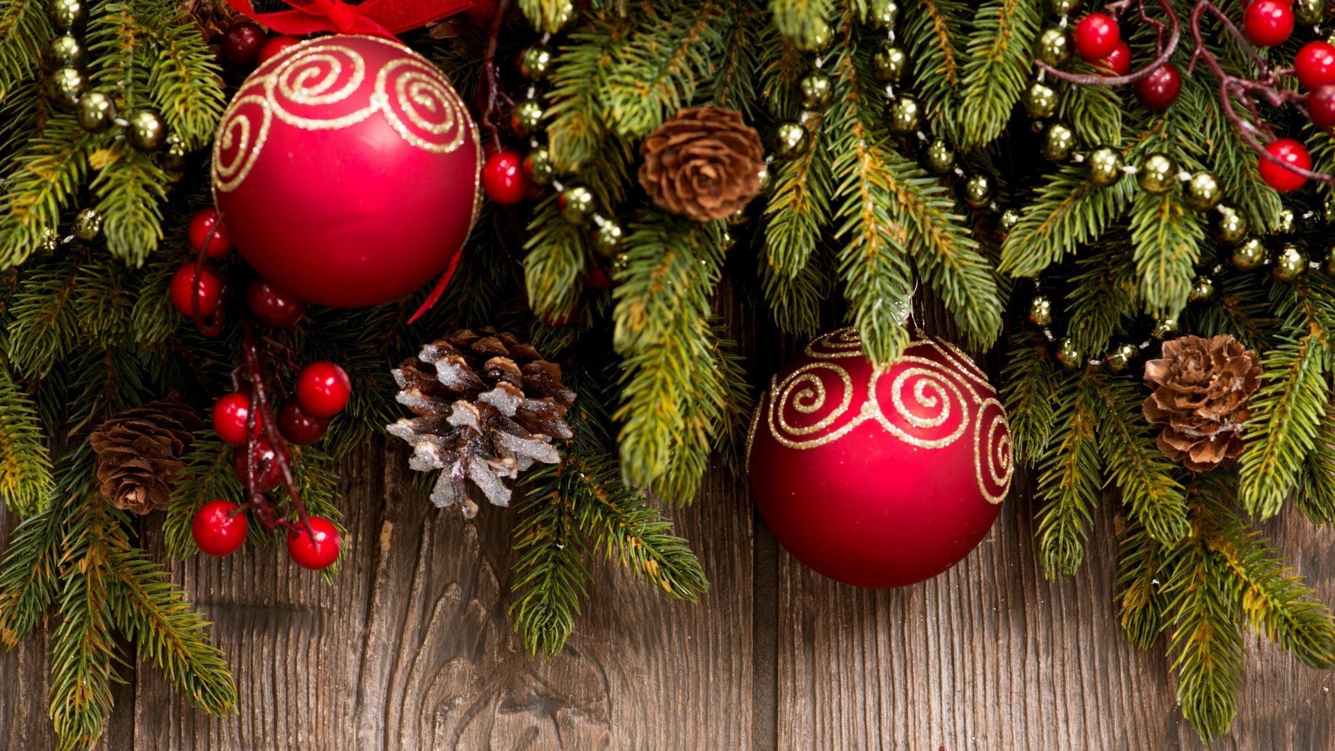 Foto di Natale con palline rosse e rami di albero di Natale