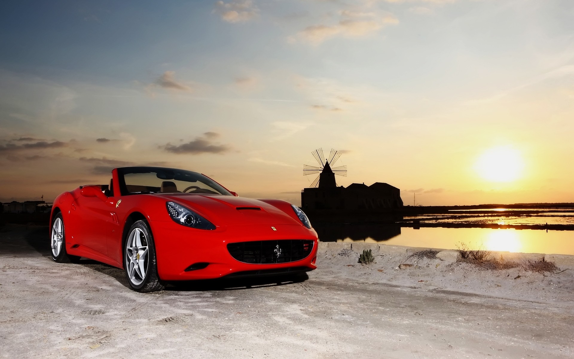 Paesaggio naturale con uno stormo di uccelli sullo sfondo del tramonto