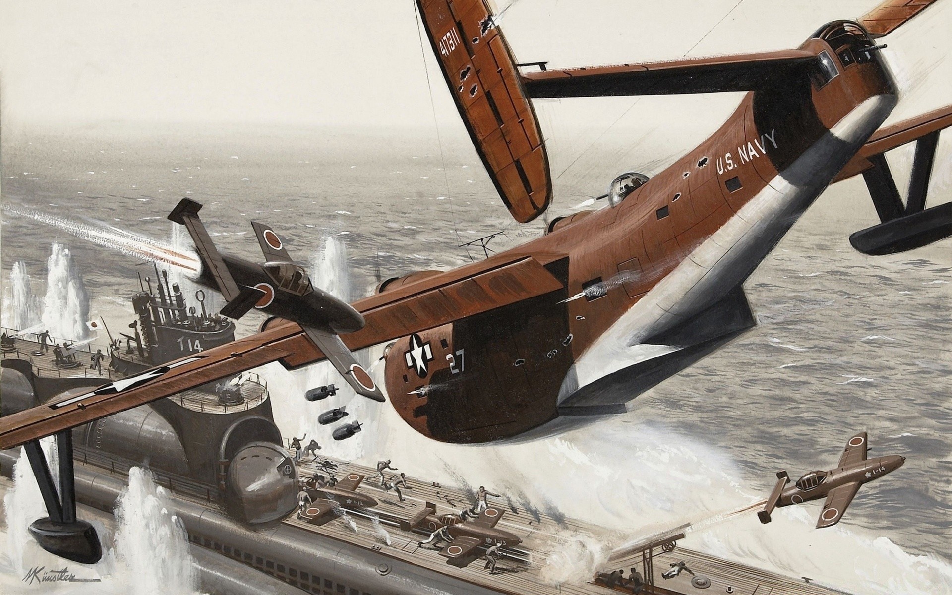 Battaglia militare. Due aerei e una nave. Battaglia sull'acqua