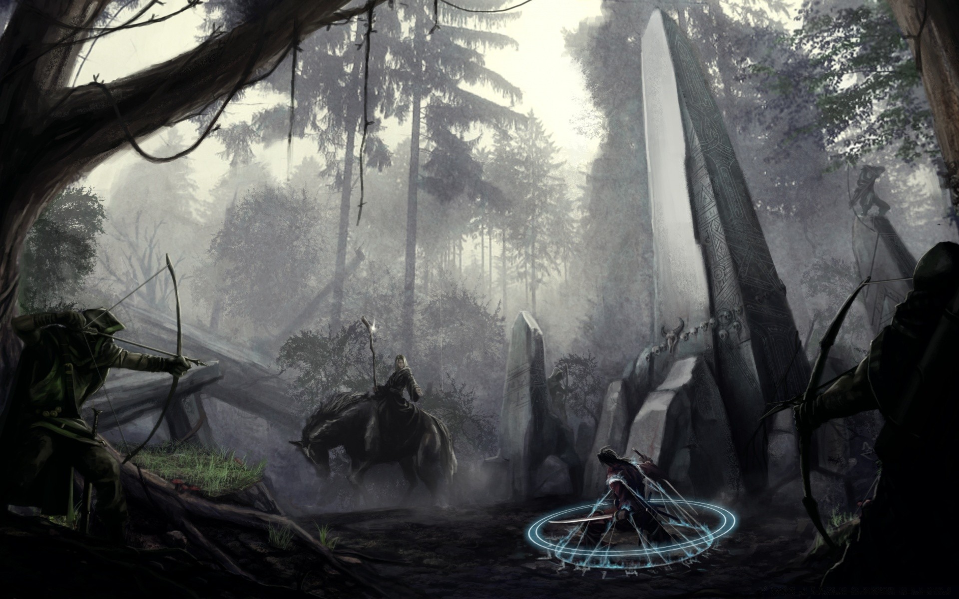 Fantasy nella foresta mistica e i loro eroi