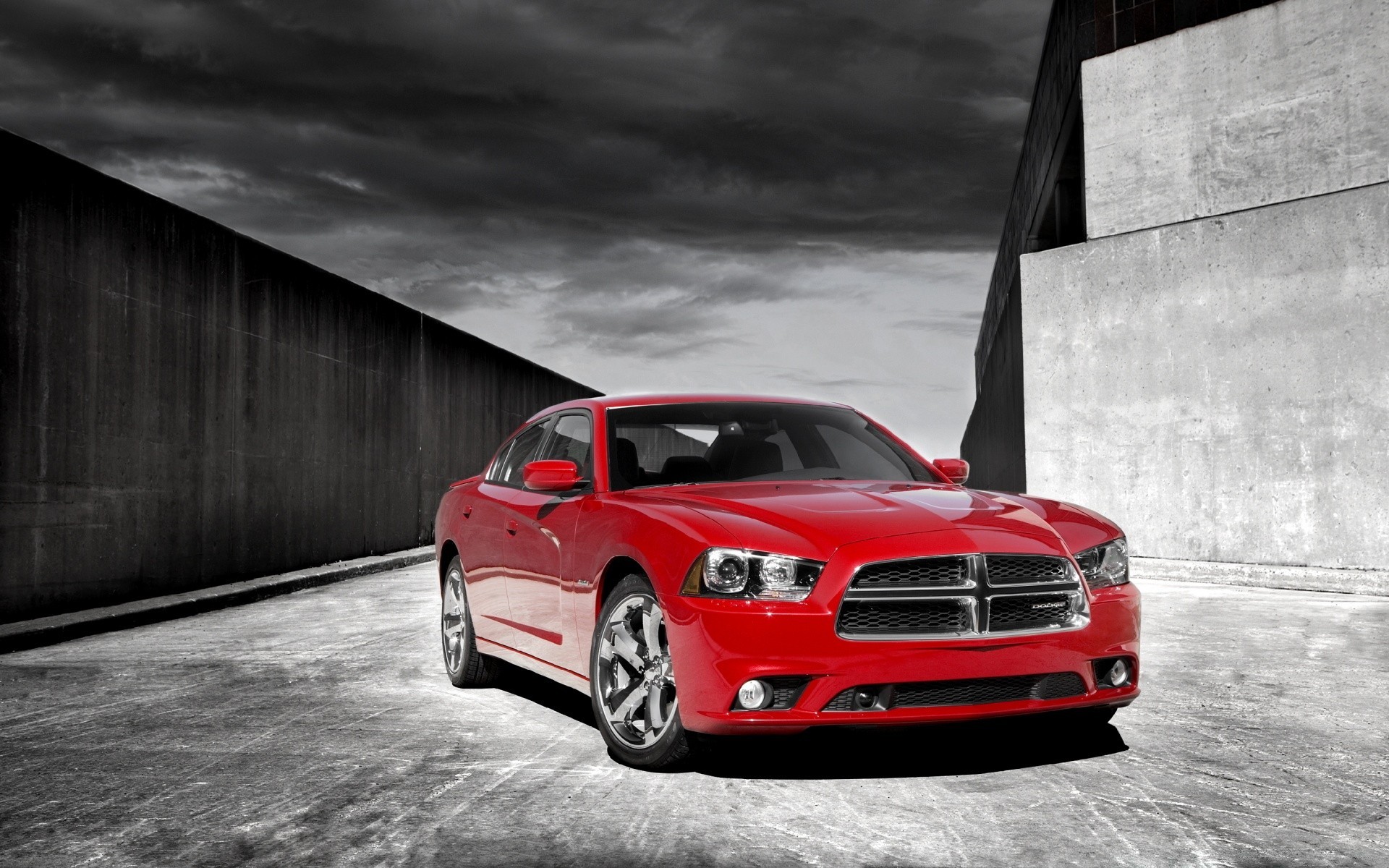 Macchina luminosa nel corridoio grigio