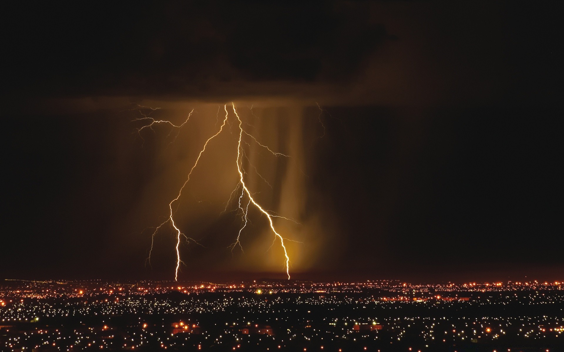 Fulmini e tuoni nel paesaggio notturno