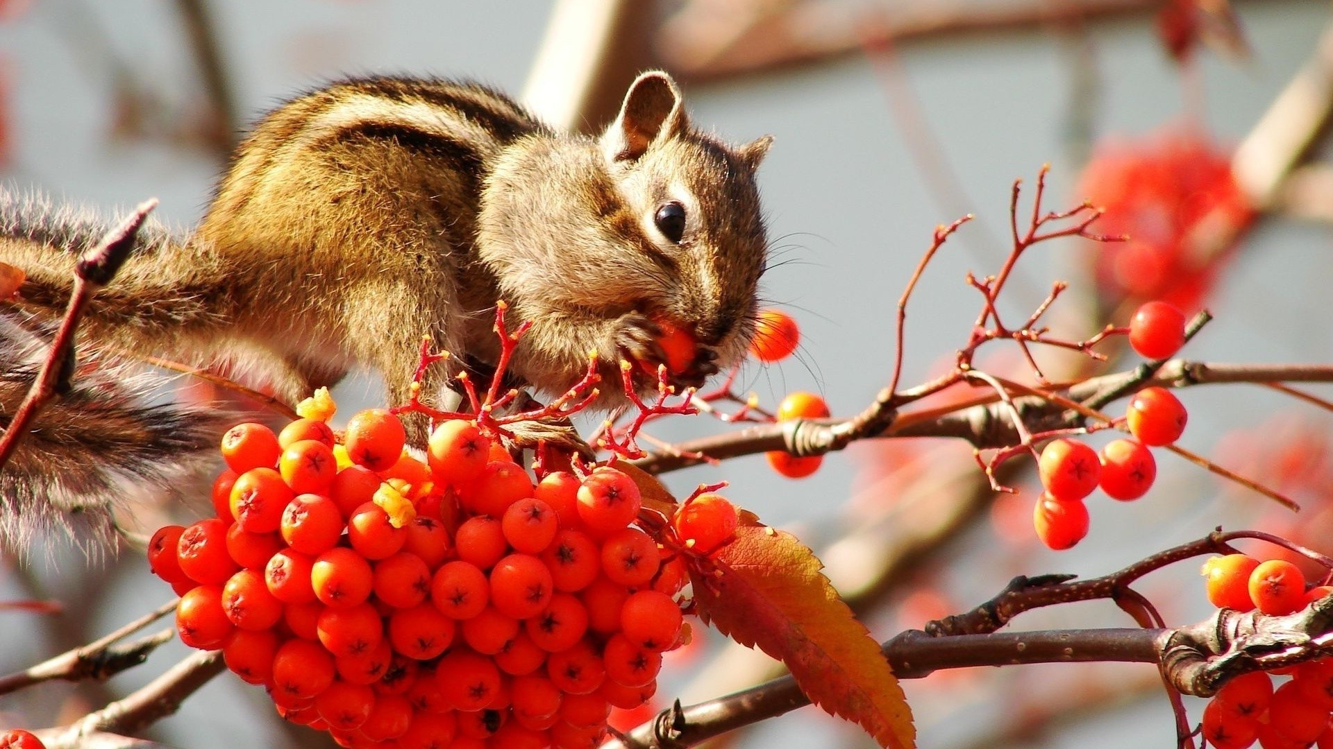 Lo scoiattolo è immagazzinato nella cenere di montagna