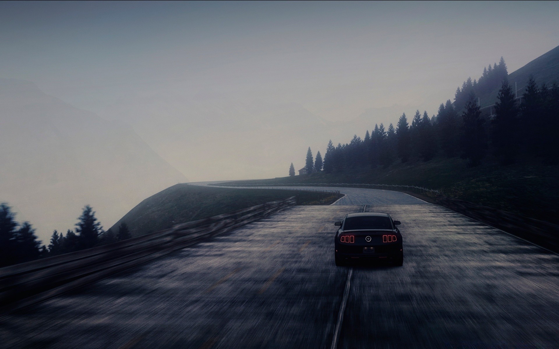 Fotomontaggio. fiume di montagna sullo sfondo di alte montagne