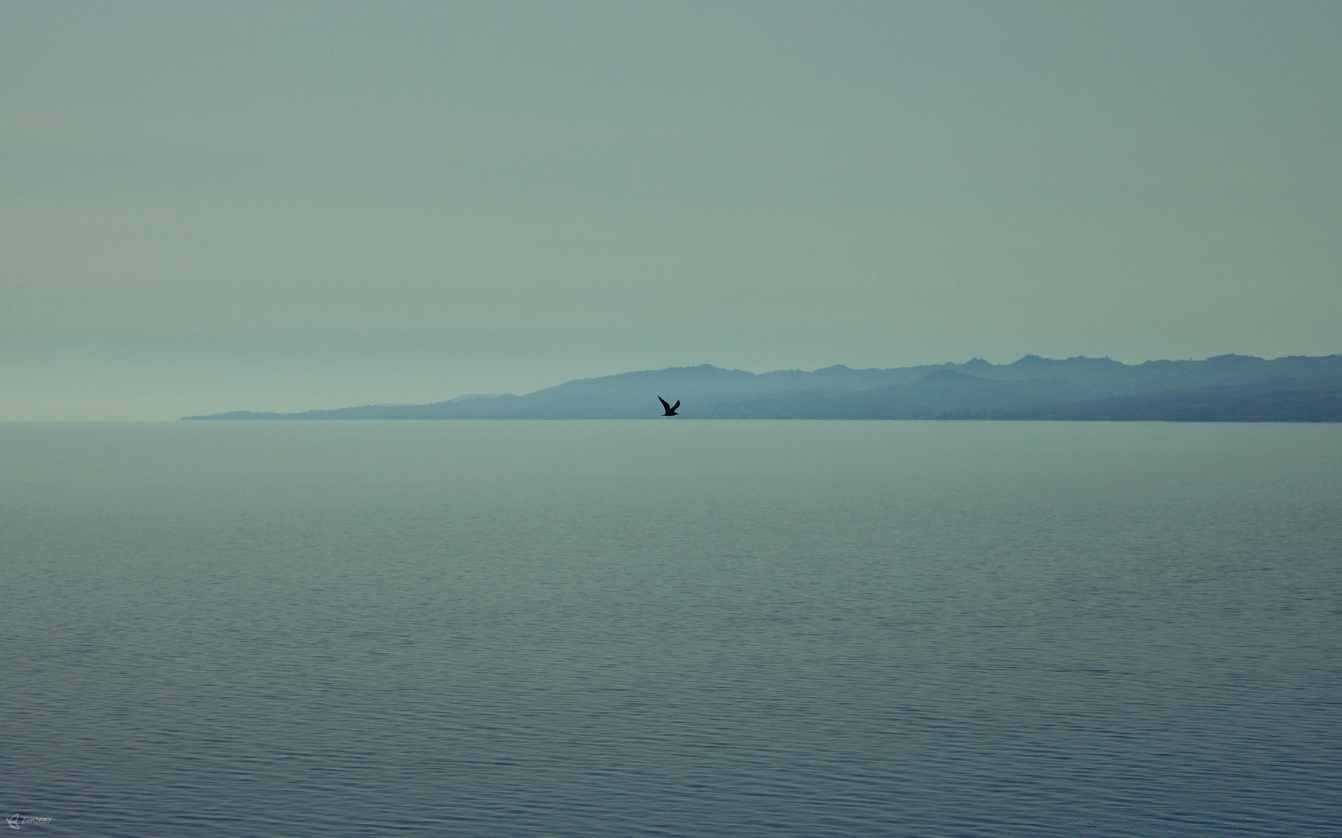 Nebbia mare oceano uccello montagna paesaggio orizzonte bellezzaNebbia mare oceano uccello montagna paesaggio orizzonte bellezza