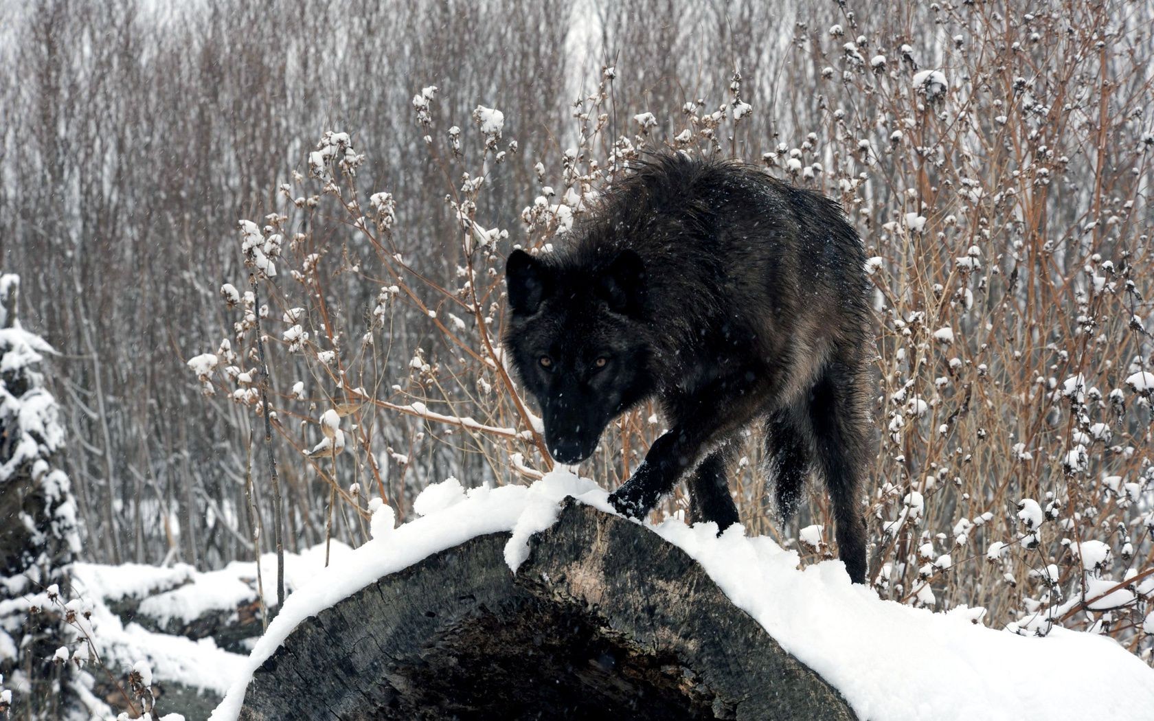Predatore domestico sotto il cappello del cumulo di nevePredatore domestico sotto il cappello del cumulo di neve
