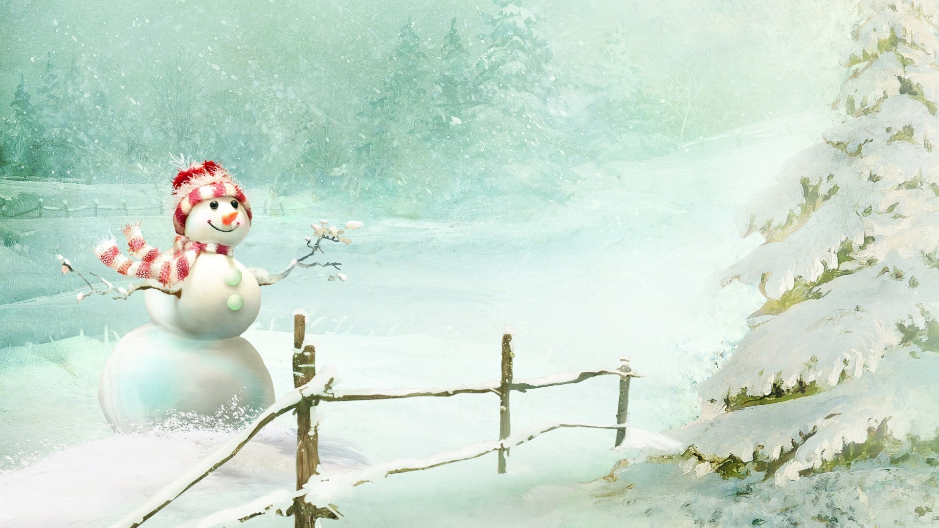 Pupazzo di neve nella foresta vicino all'abete rosso della nevePupazzo di neve nella foresta vicino all'abete rosso della neve