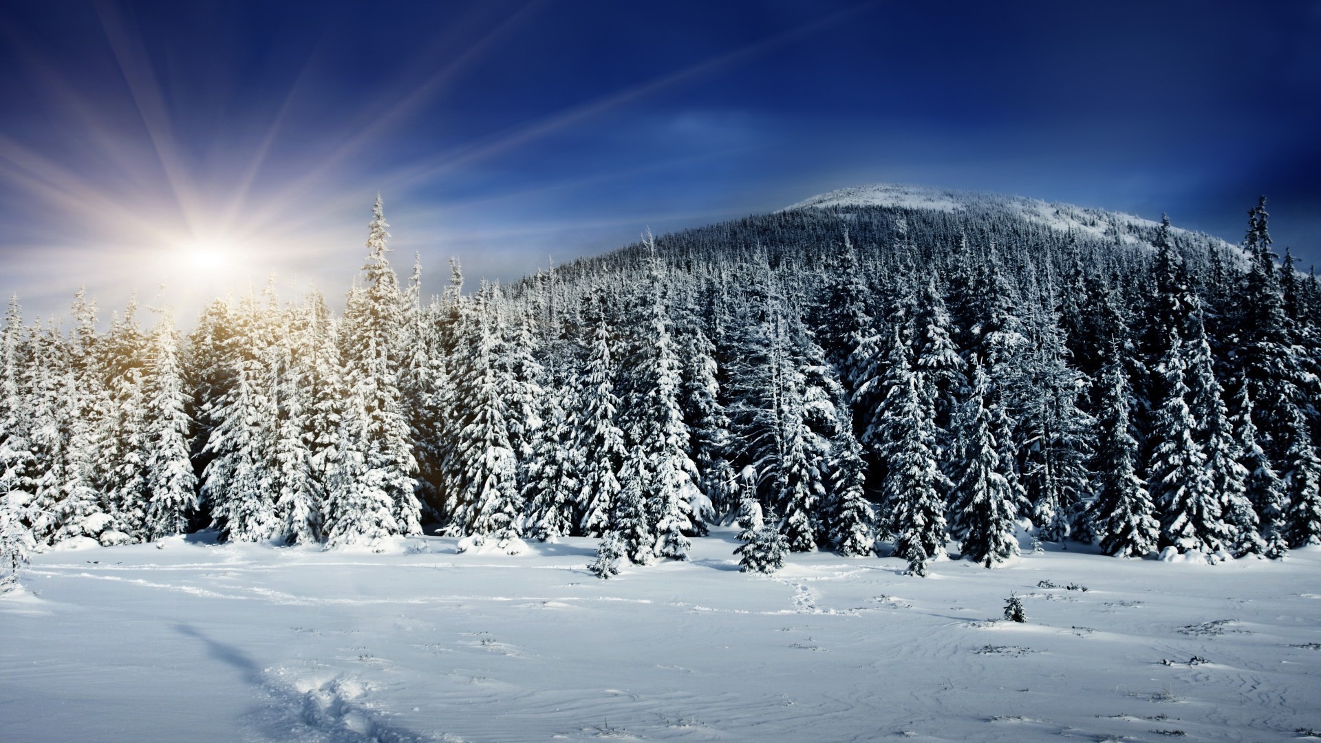 Vista dall'alto dell'abete rosso nella neve e nebbia sotto di loro