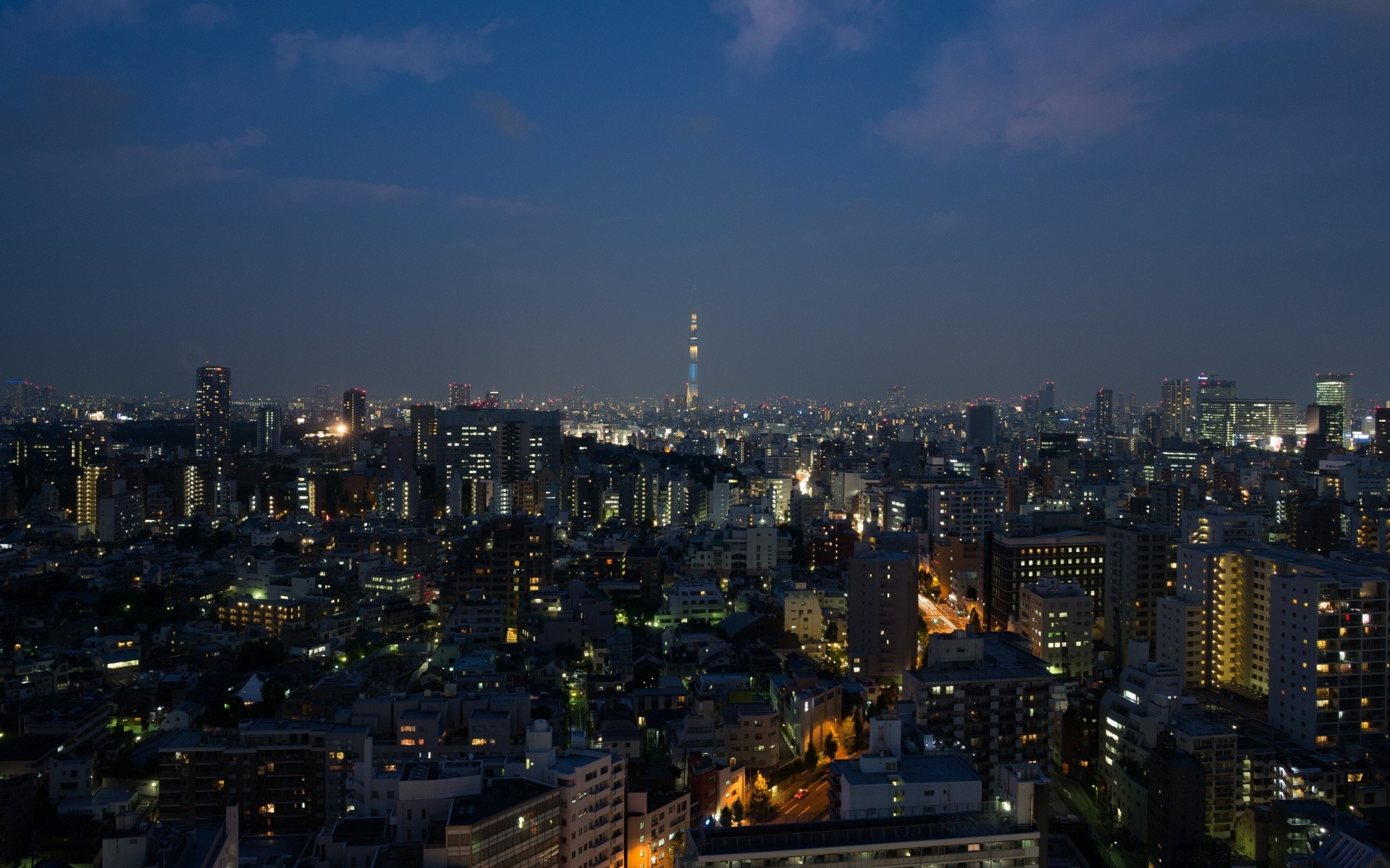 Città di notte sullo sfondo di un bel cielo