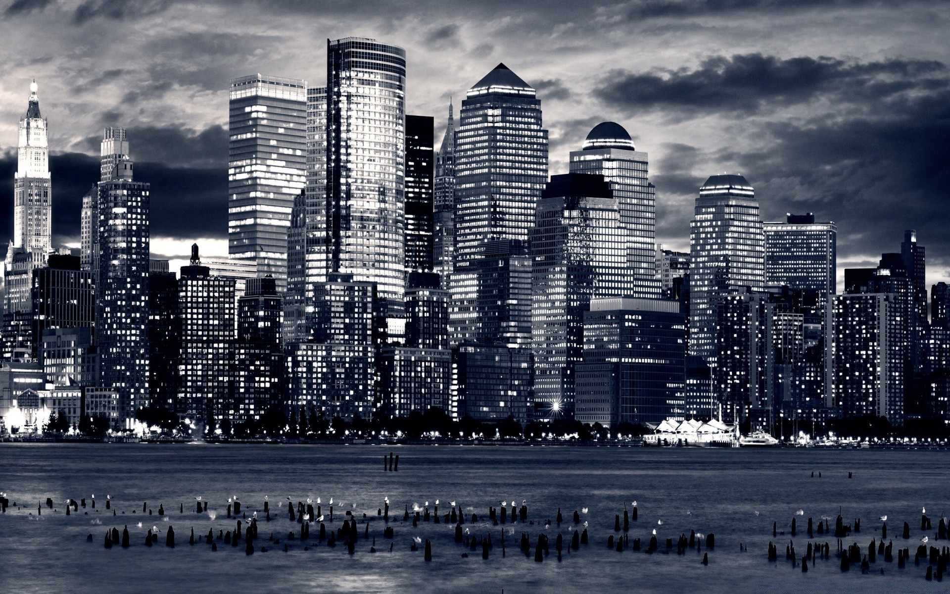 Vivace metropoli densamente popolata di notte