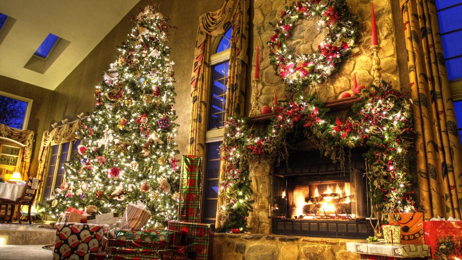 Bellissimo design del camino e dell'albero di nataleBellissimo design del camino e dell'albero di Natale