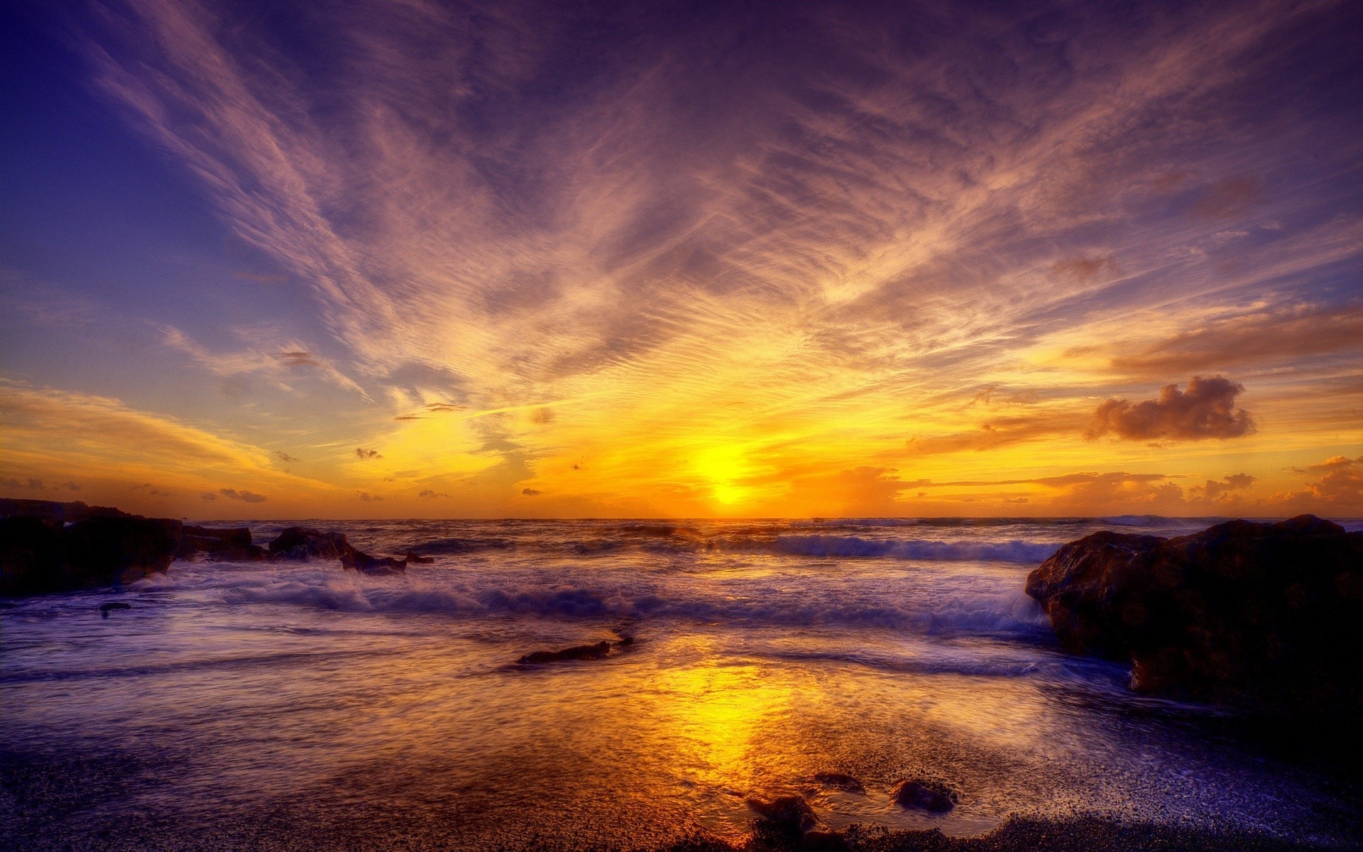 Il tramonto ha illuminato l'oceano con diversi coloriIl tramonto ha illuminato l'oceano con diversi colori