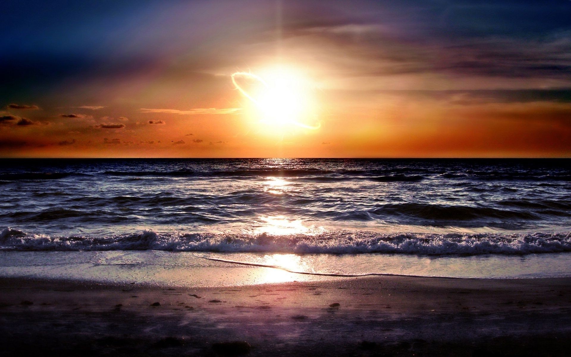 Bellissimo tramonto sulla spiaggia dell'oceano
