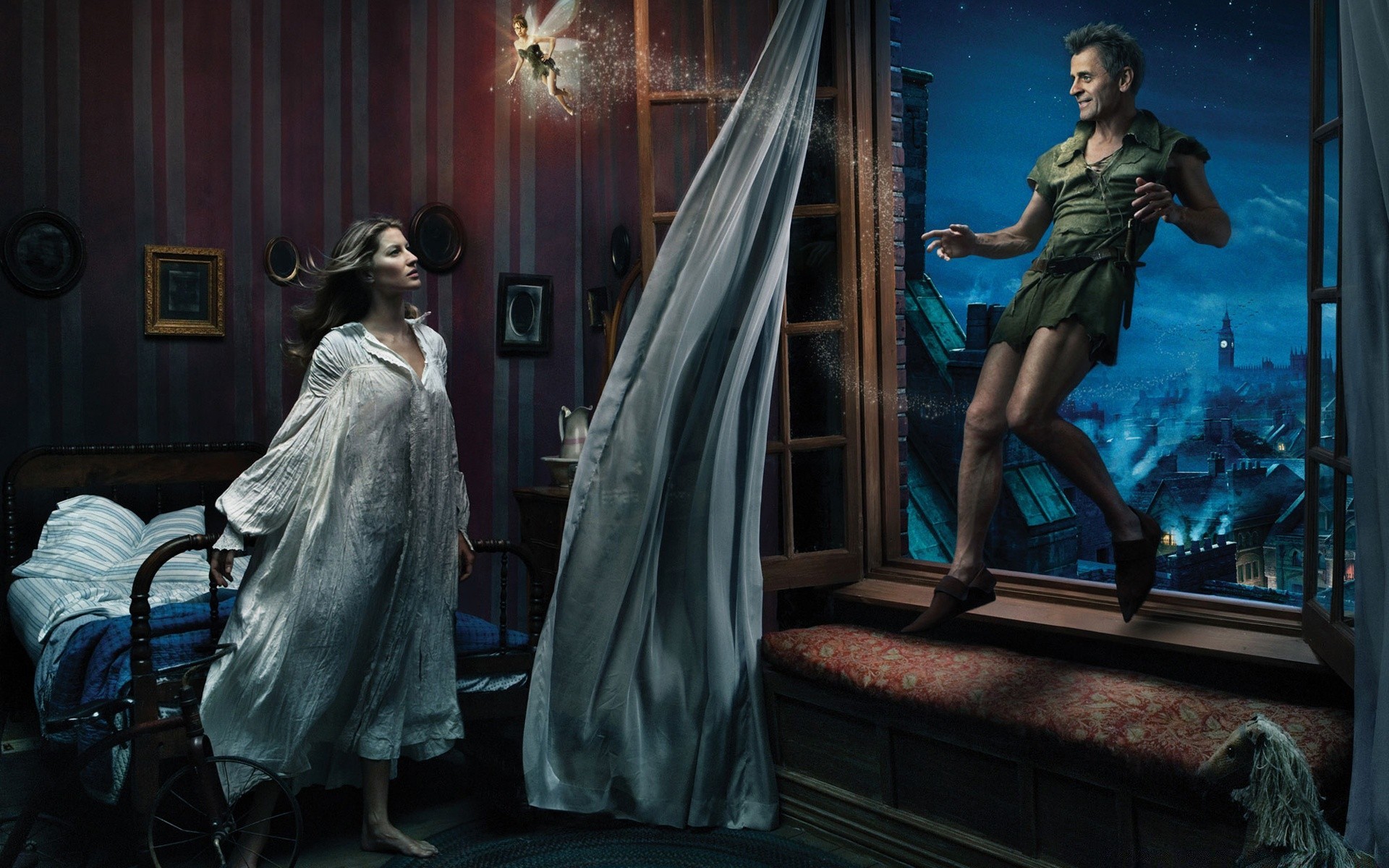 Illustrazione fantastica con fata e Peter Pan