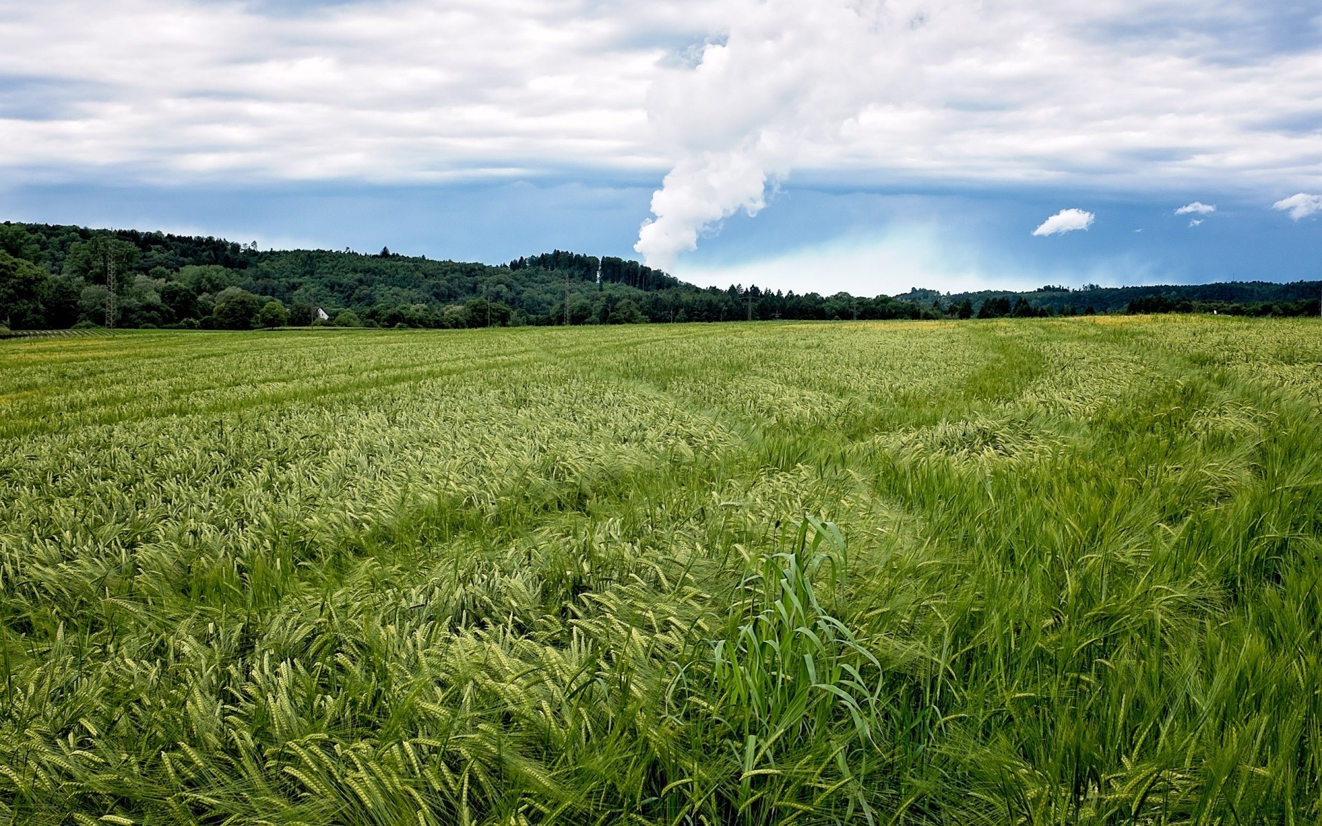 Paesaggio. Foresta verde sullo sfondo delle montagne
