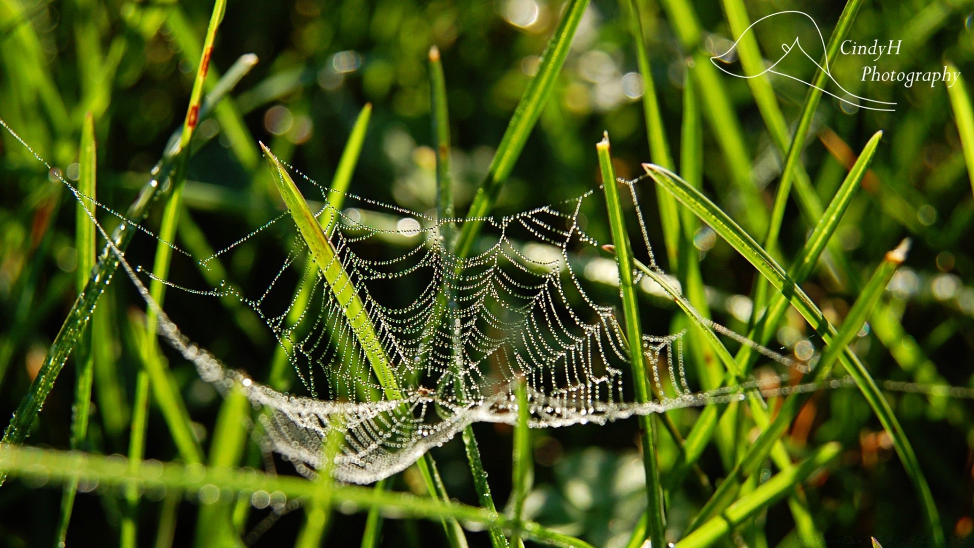 Reti di web su erba verde