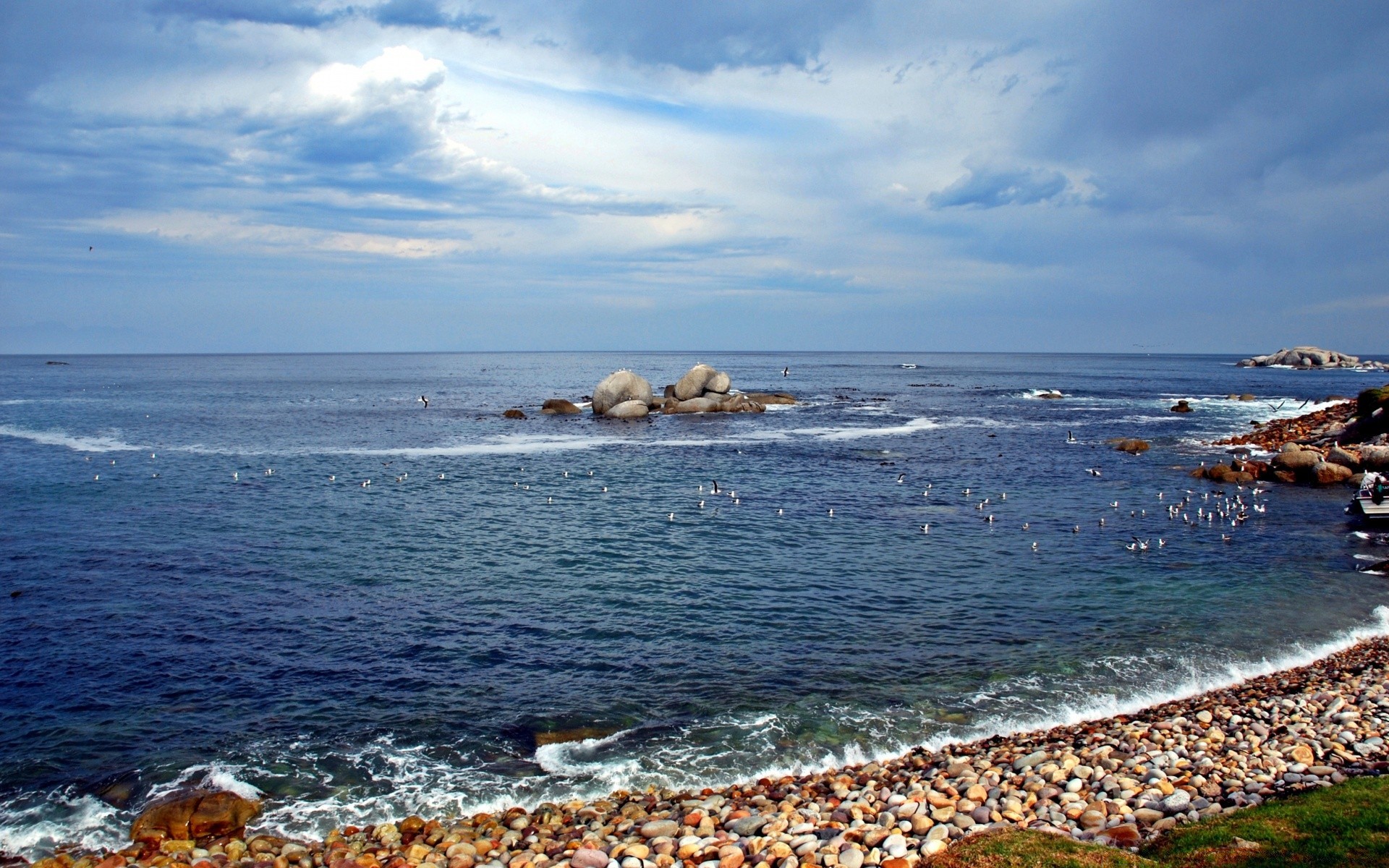 Panorama del mare con spiaggia e roccia con vista sull'isolaPanorama del mare con spiaggia e roccia con vista sull'Isola