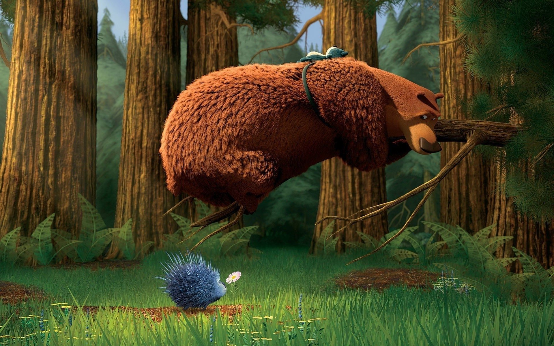 Orso appeso su una cagna sopra un riccio
