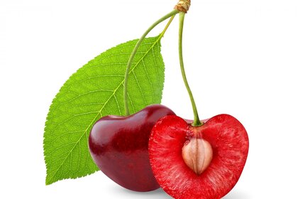 Disegno ciliegia con osso e foglia
