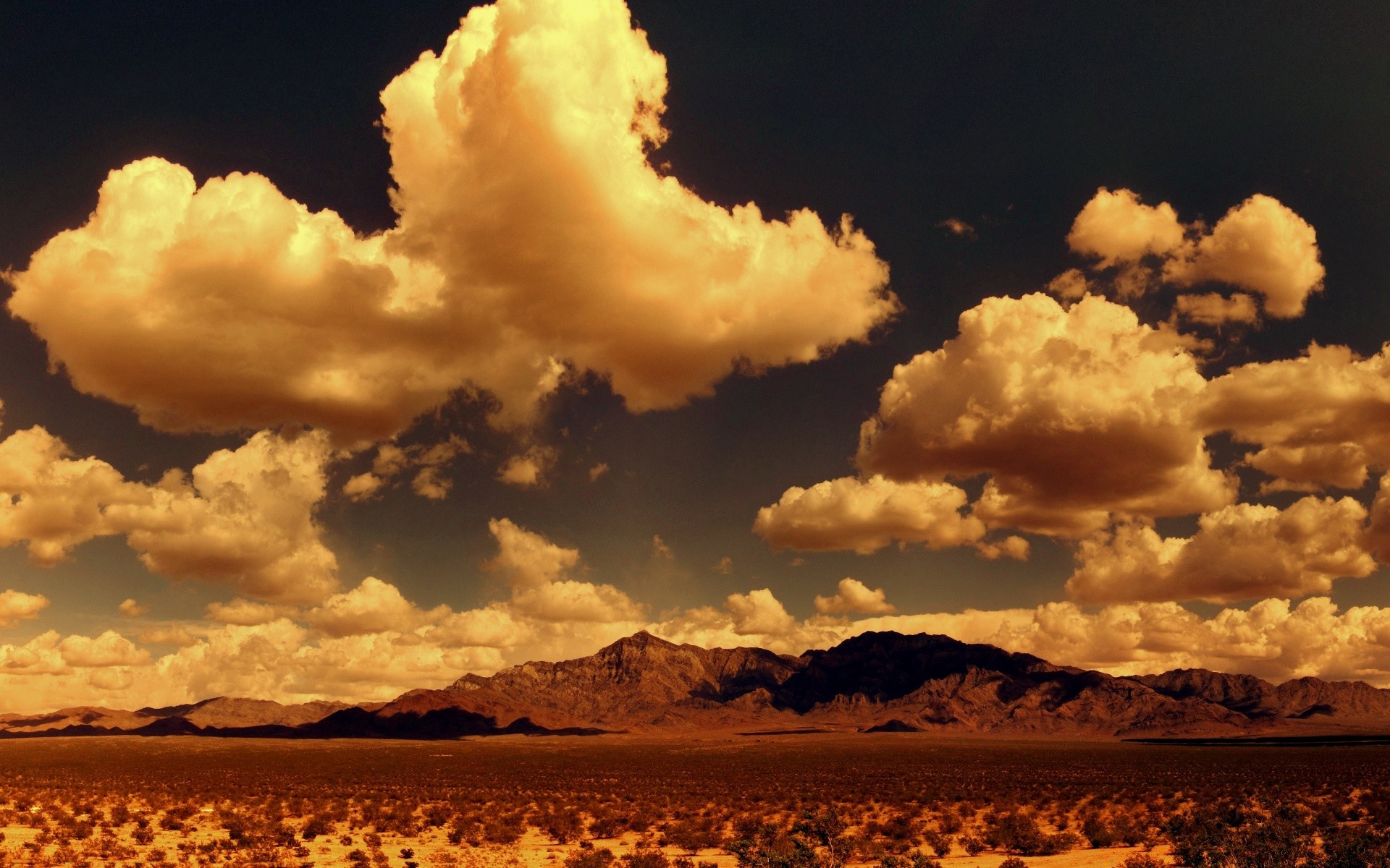 Paesaggio di montagna con grandi nuvole