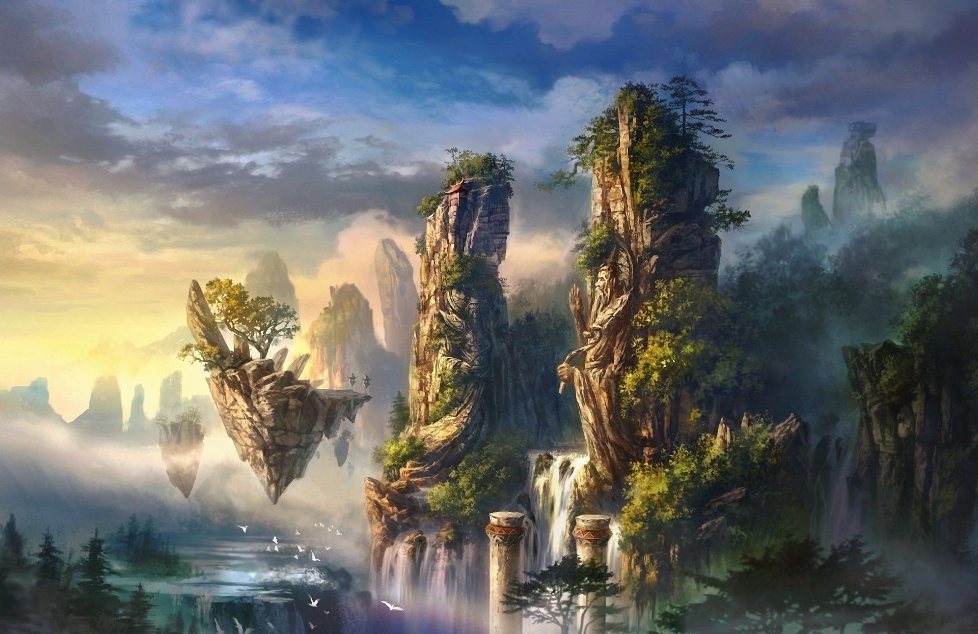 Fantastico paesaggio all'alba