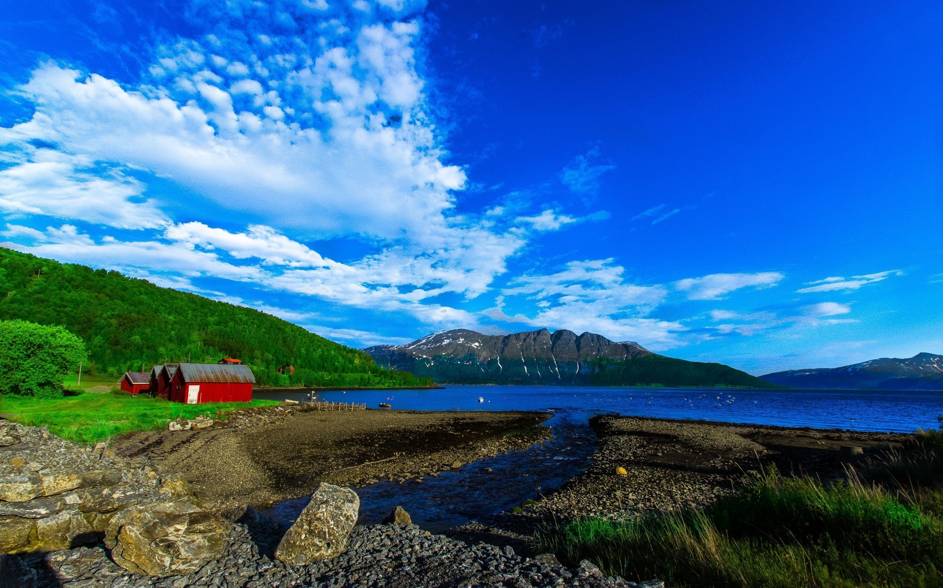 Paesaggio con cielo molto blu e lago blu brillantePaesaggio con cielo molto blu e Lago blu brillante