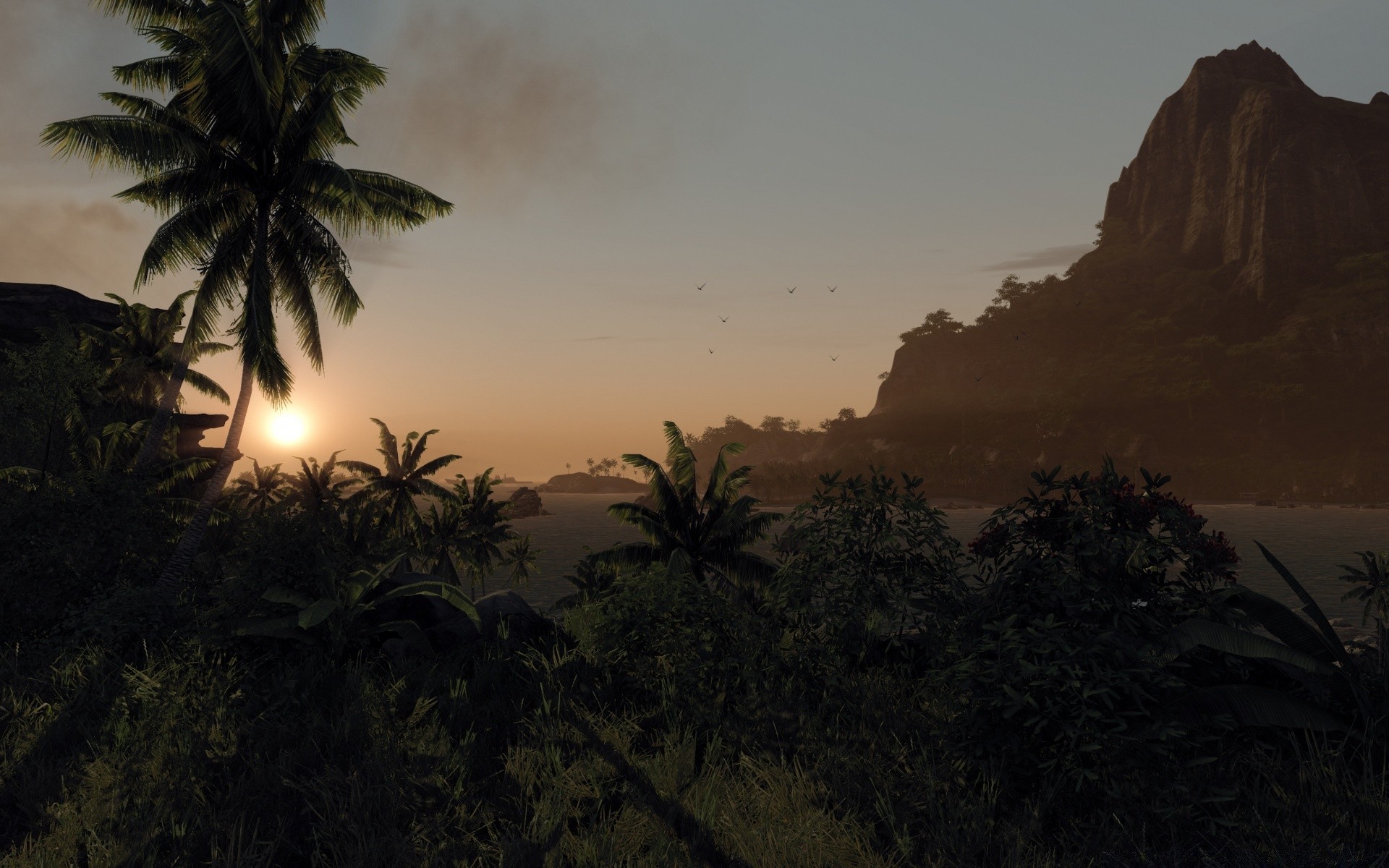 Coppia innamorata incontra l'alba sulla spiaggia sotto le palme in riva al mare