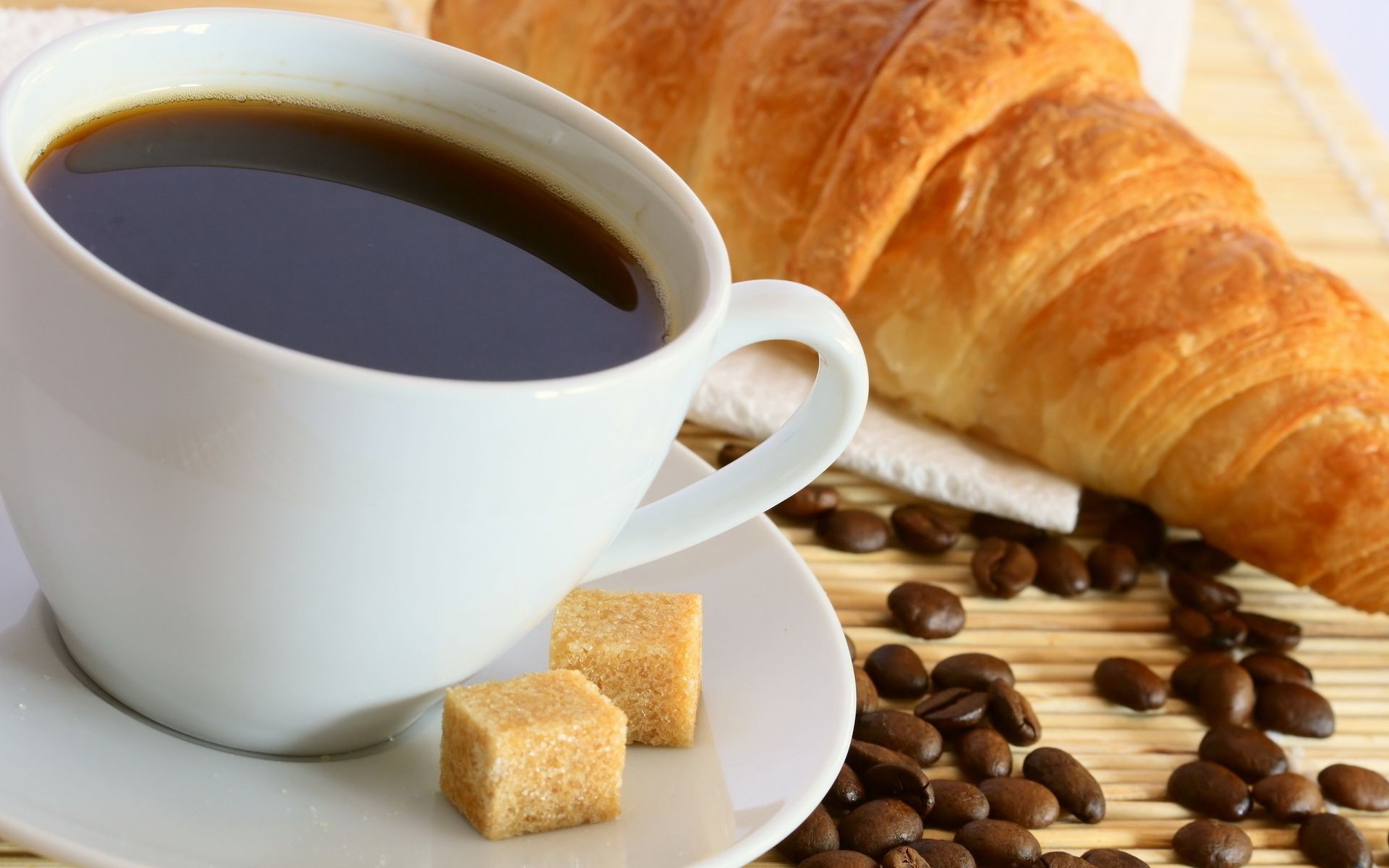 Caffè con croissant per colazione all'alba