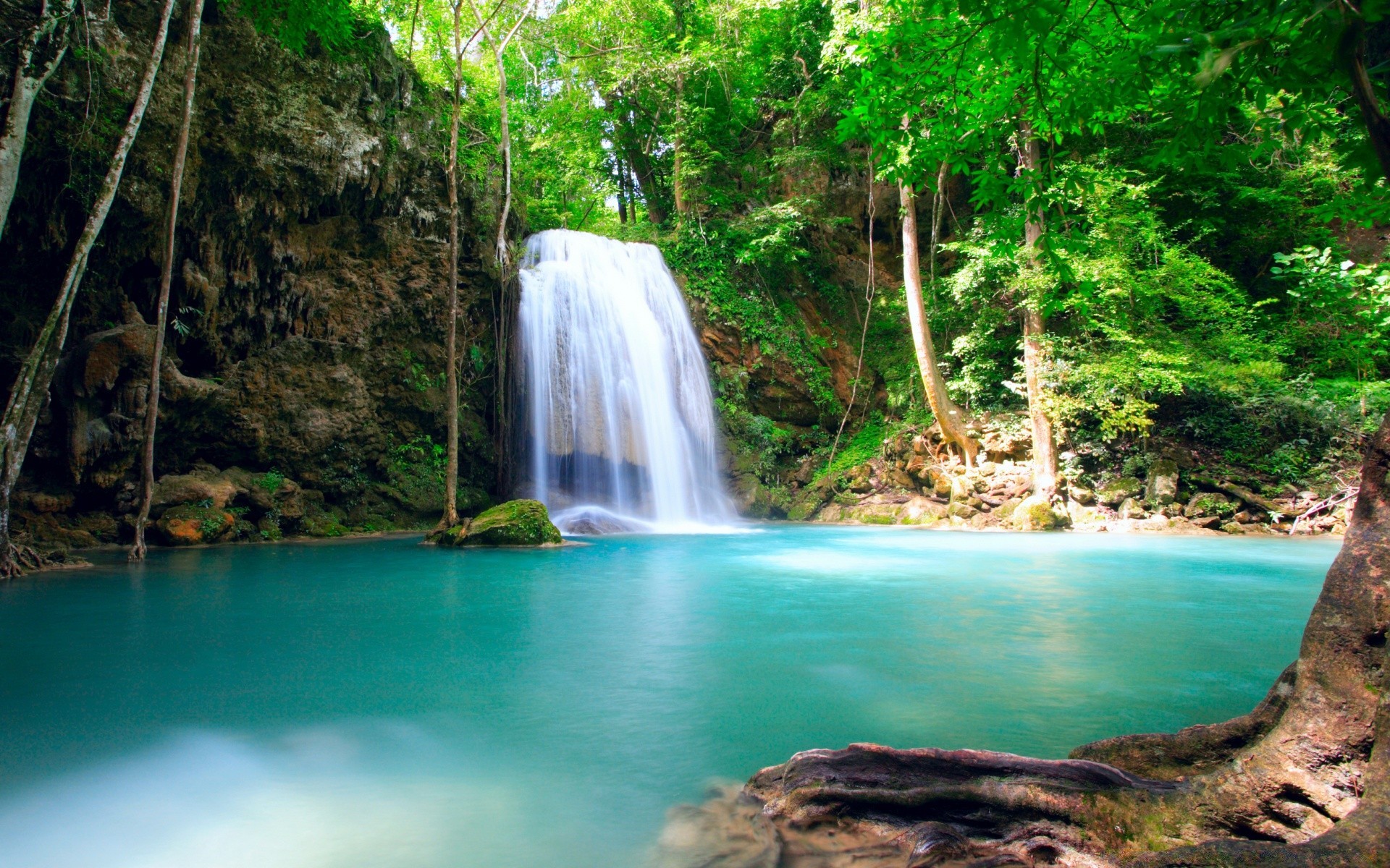 Cascata tropicale. Giungla verde. Un angolo di paradiso