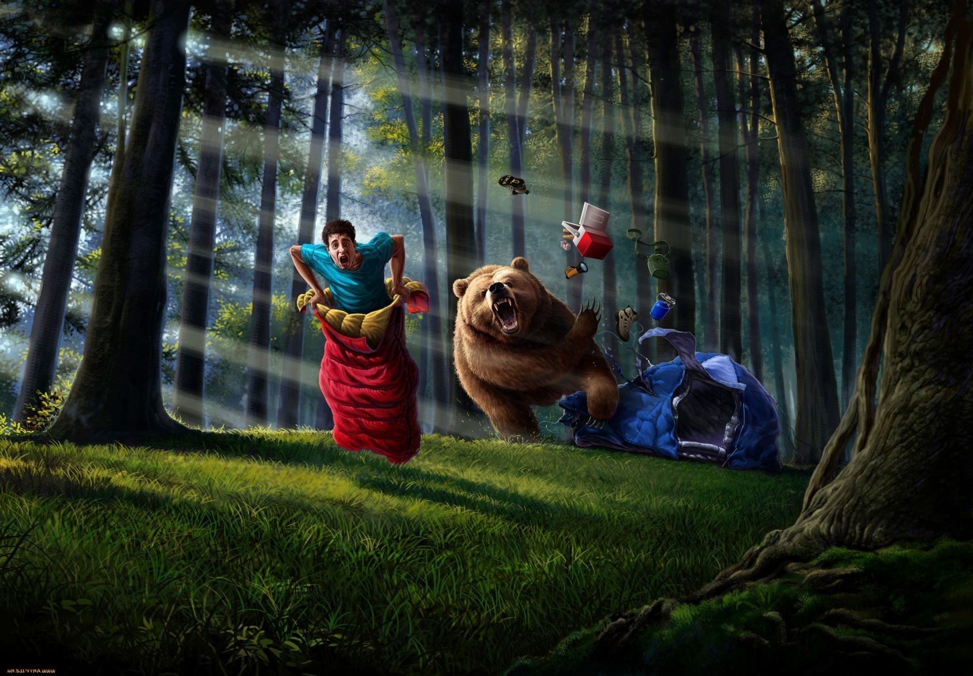 Oltre il lago di palude nella foresta illuminata dai raggi del soleOltre il Lago di palude nella foresta illuminata dai raggi del sole