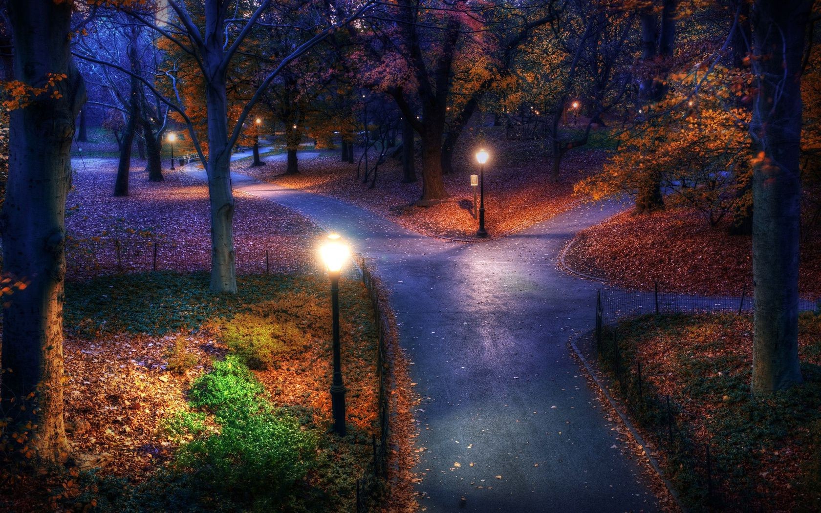 Parco ricreativo notturno autunnale