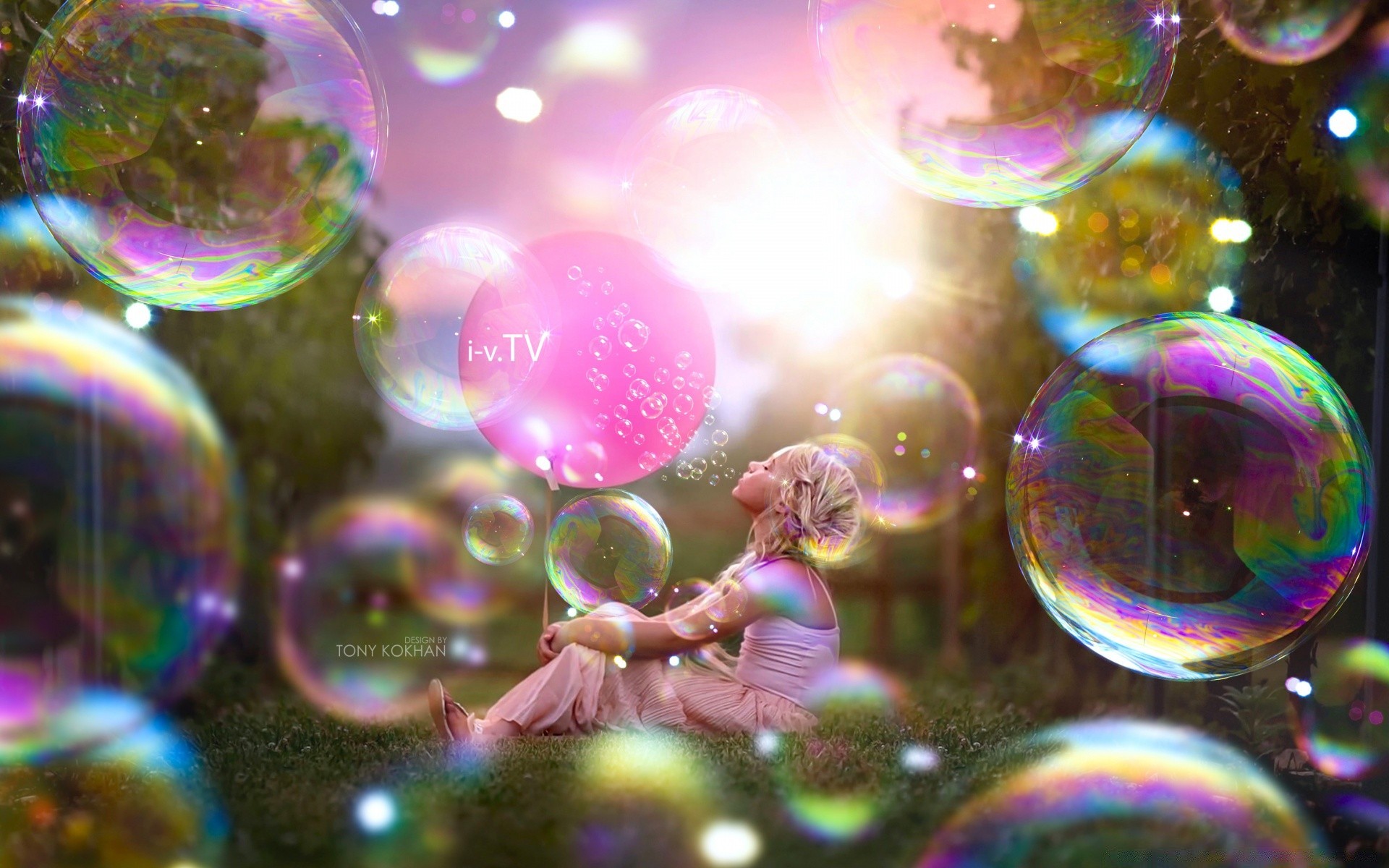 Ragazza sullo sfondo di bolle di sapone