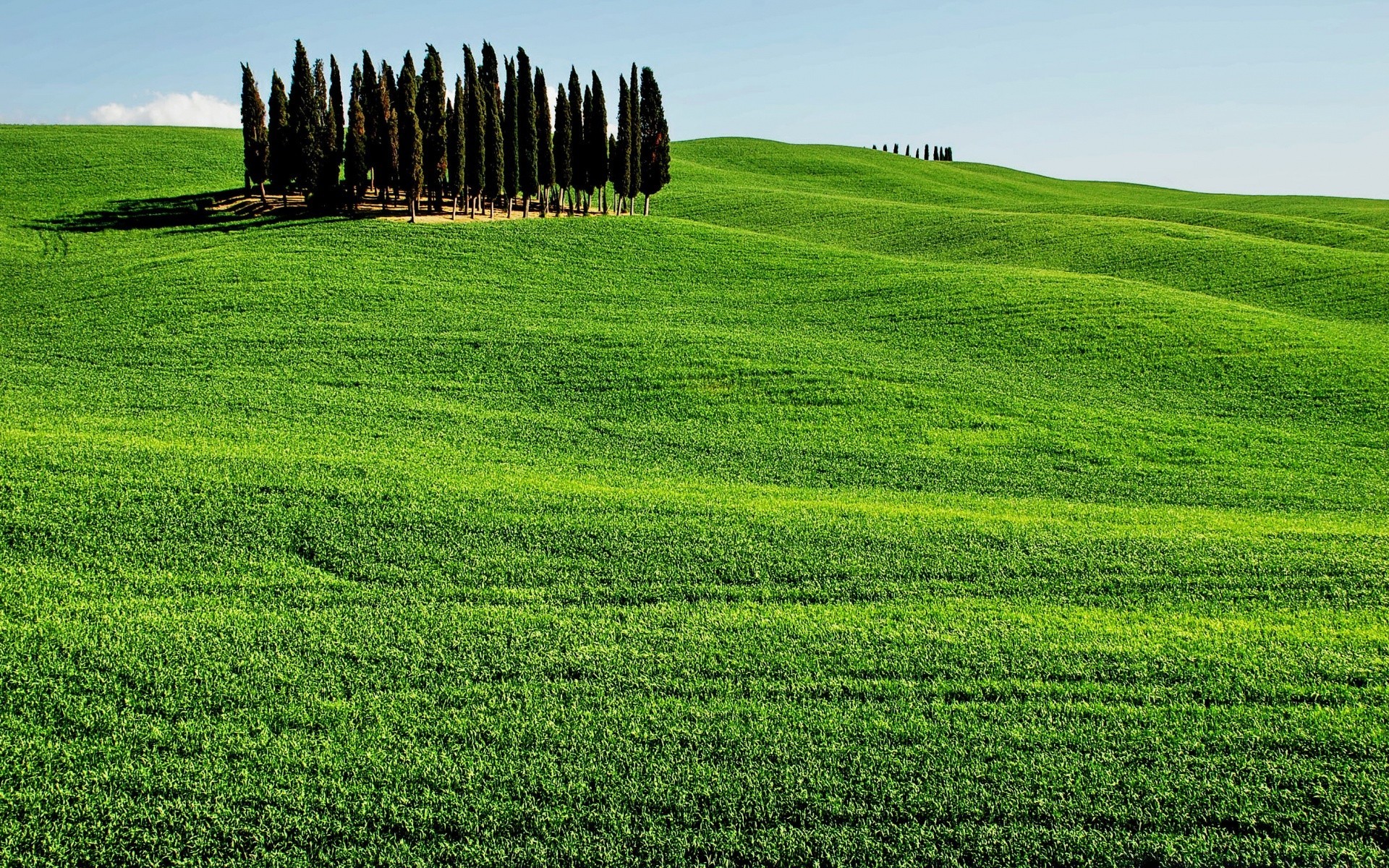 Alberi solitari su uno sfondo di cielo rosa-viola