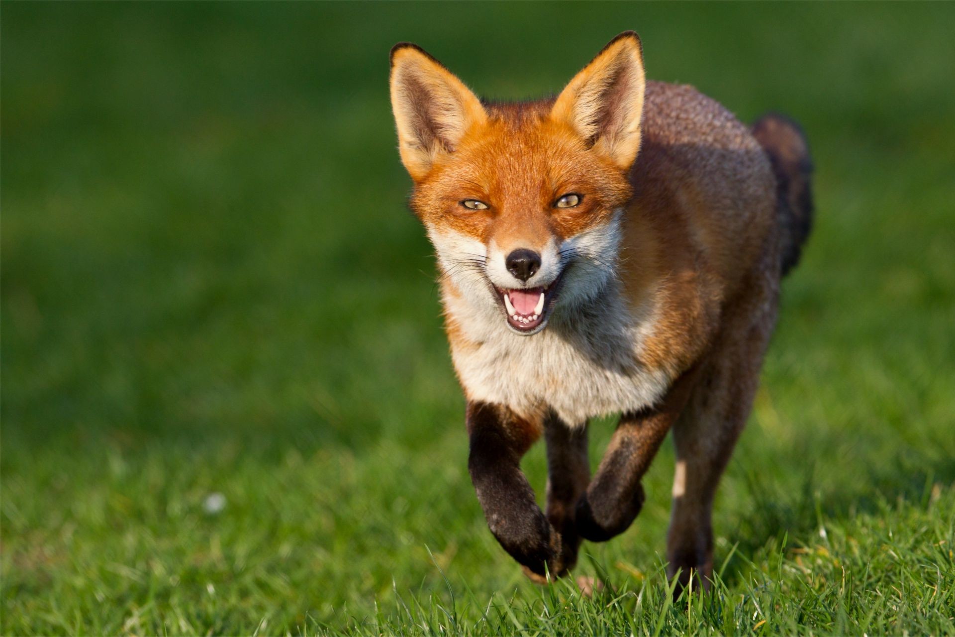 Volpe rossa che corre sull'erba