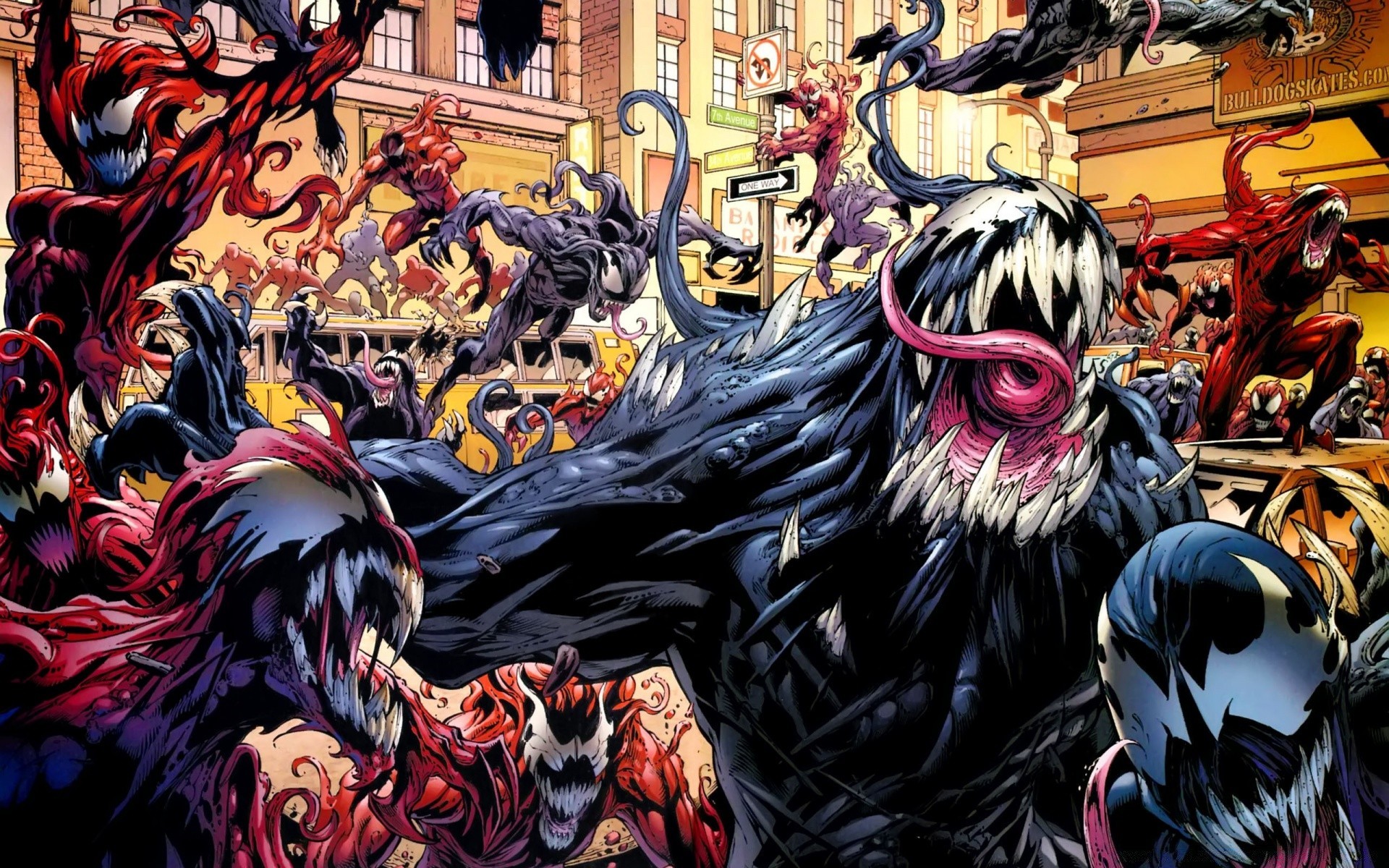 Illustrazione di un cartone animato con mostri a denti