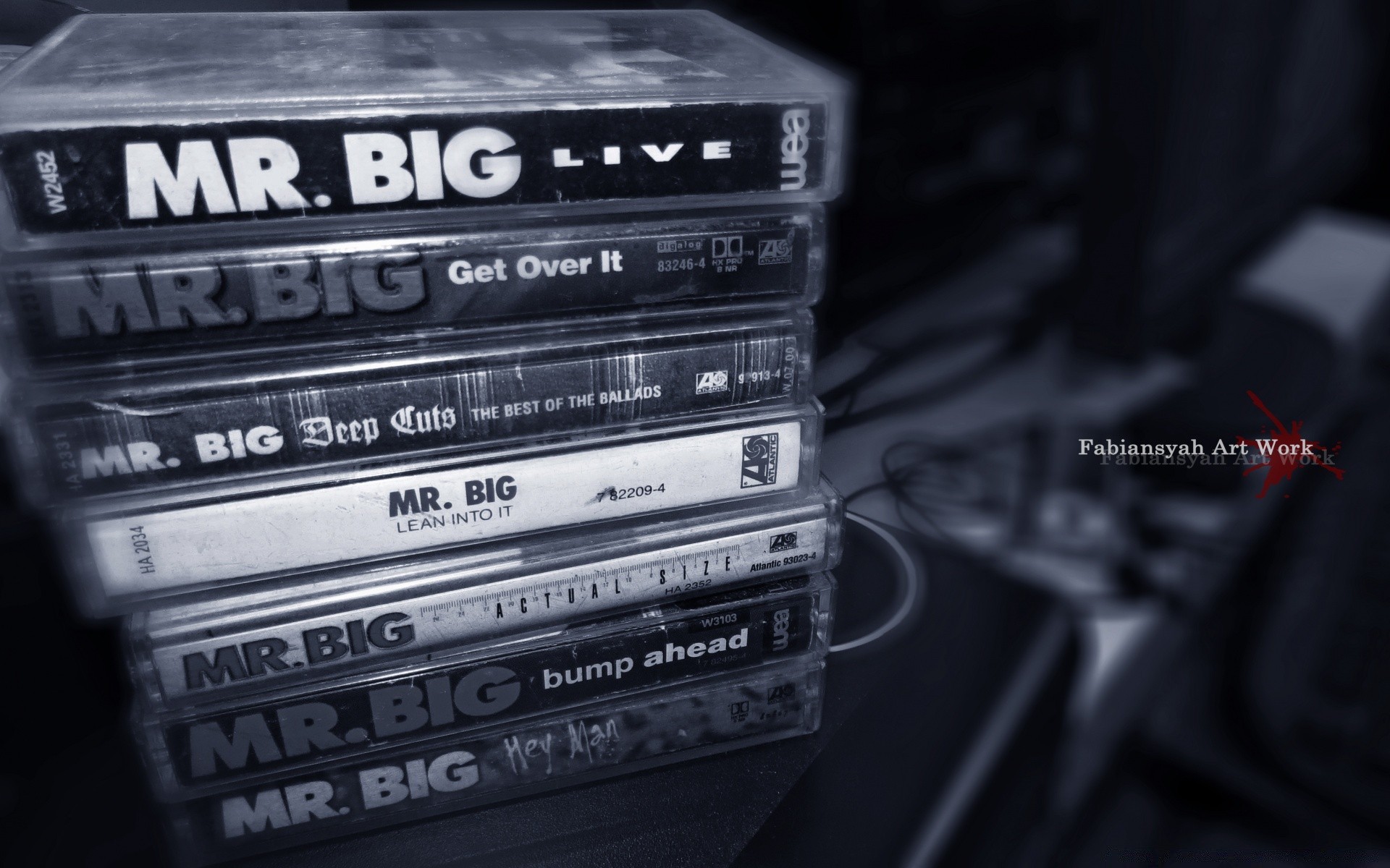 Pila di cassette audio distese su un oggetto scuro