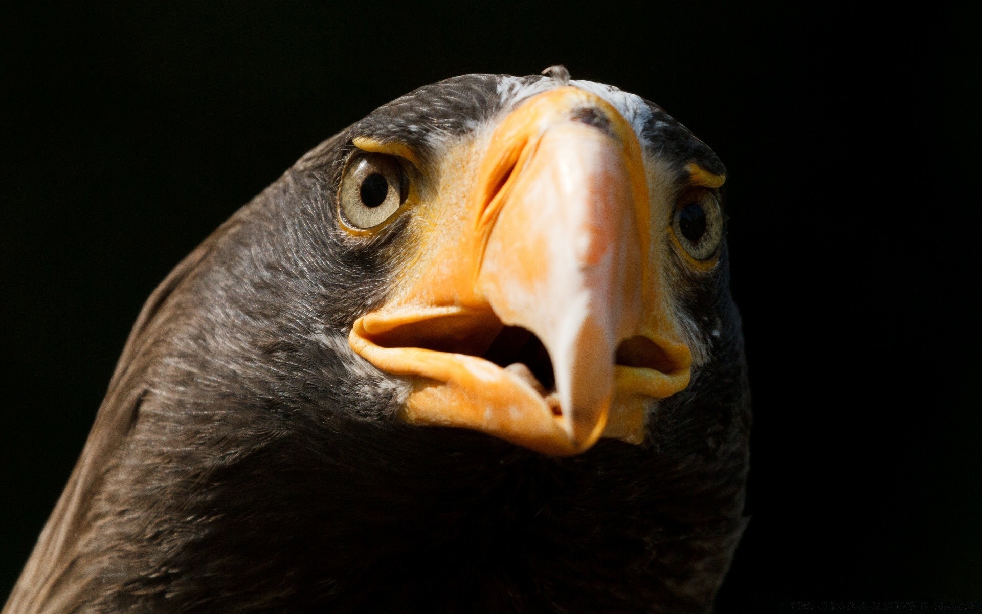 Sguardo predatore dell'Aquila. Uccello su sfondo scuro