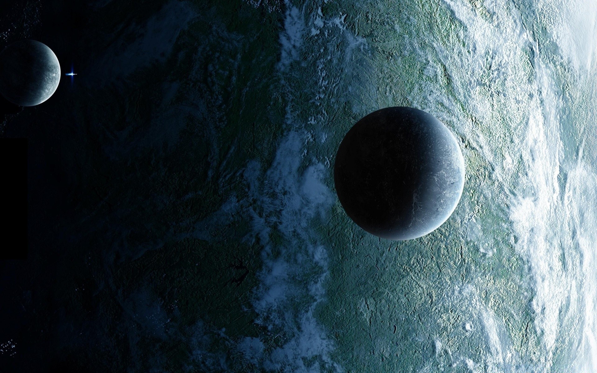 Immagine creativa di un pianeta con isole verdi e mari nello spazio