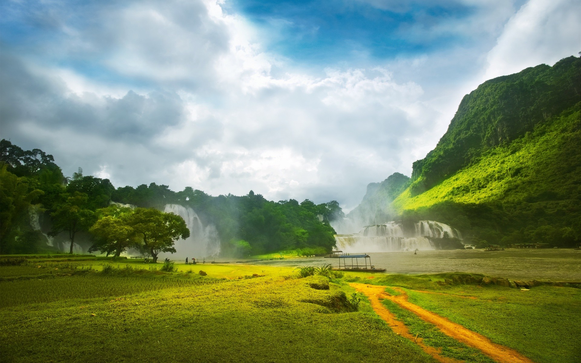 Parahrd nel fiume sullo sfondo delle montagne