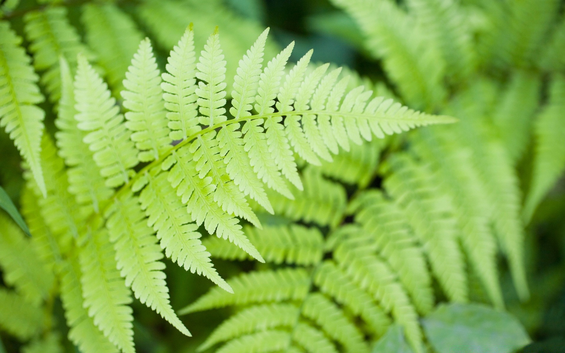 Paesaggio forestale con effetto soft focus. Piante con foglie rotonde in primo piano