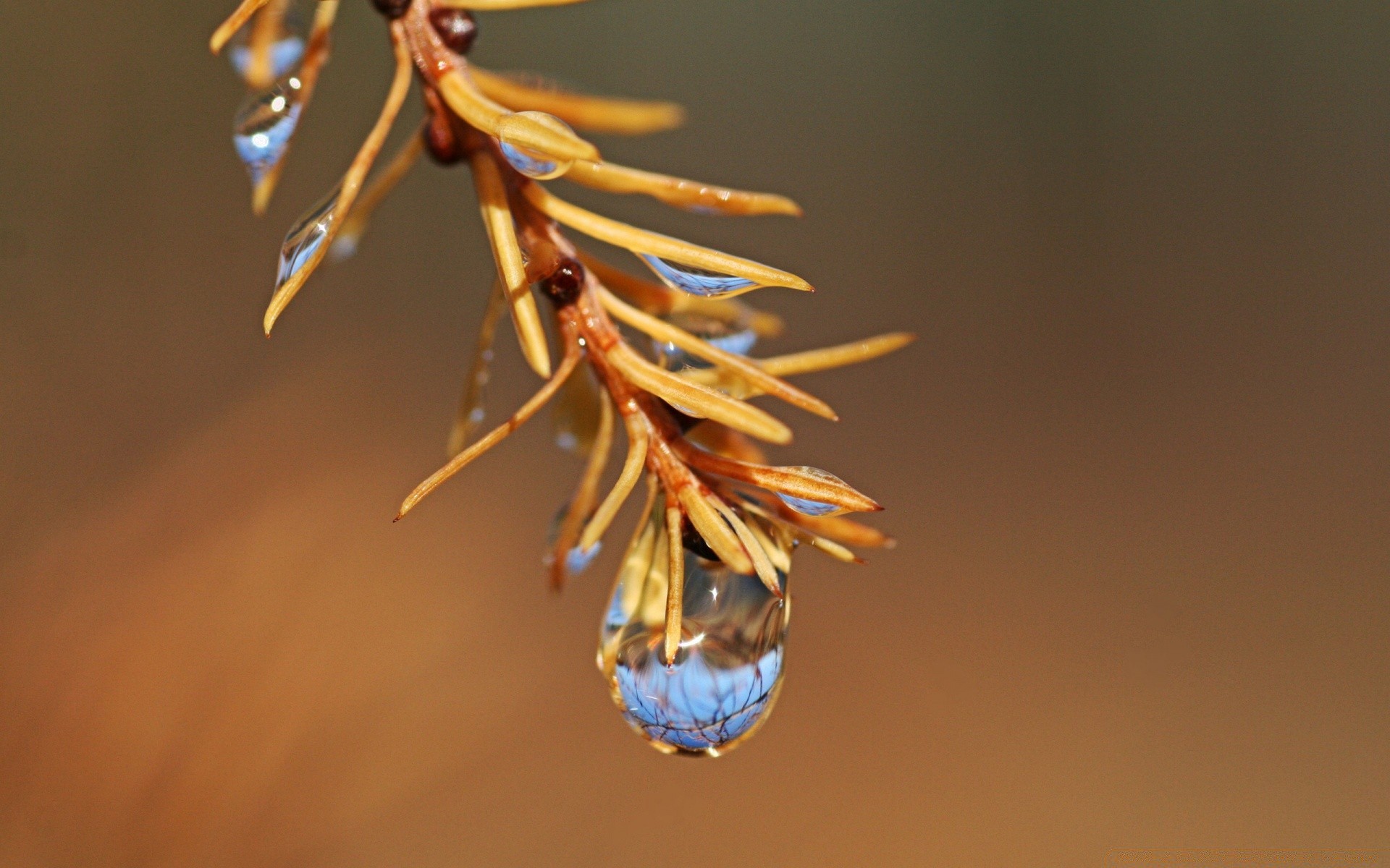 Sul pino ci sono gocce d'acqua con una tonalità interessante