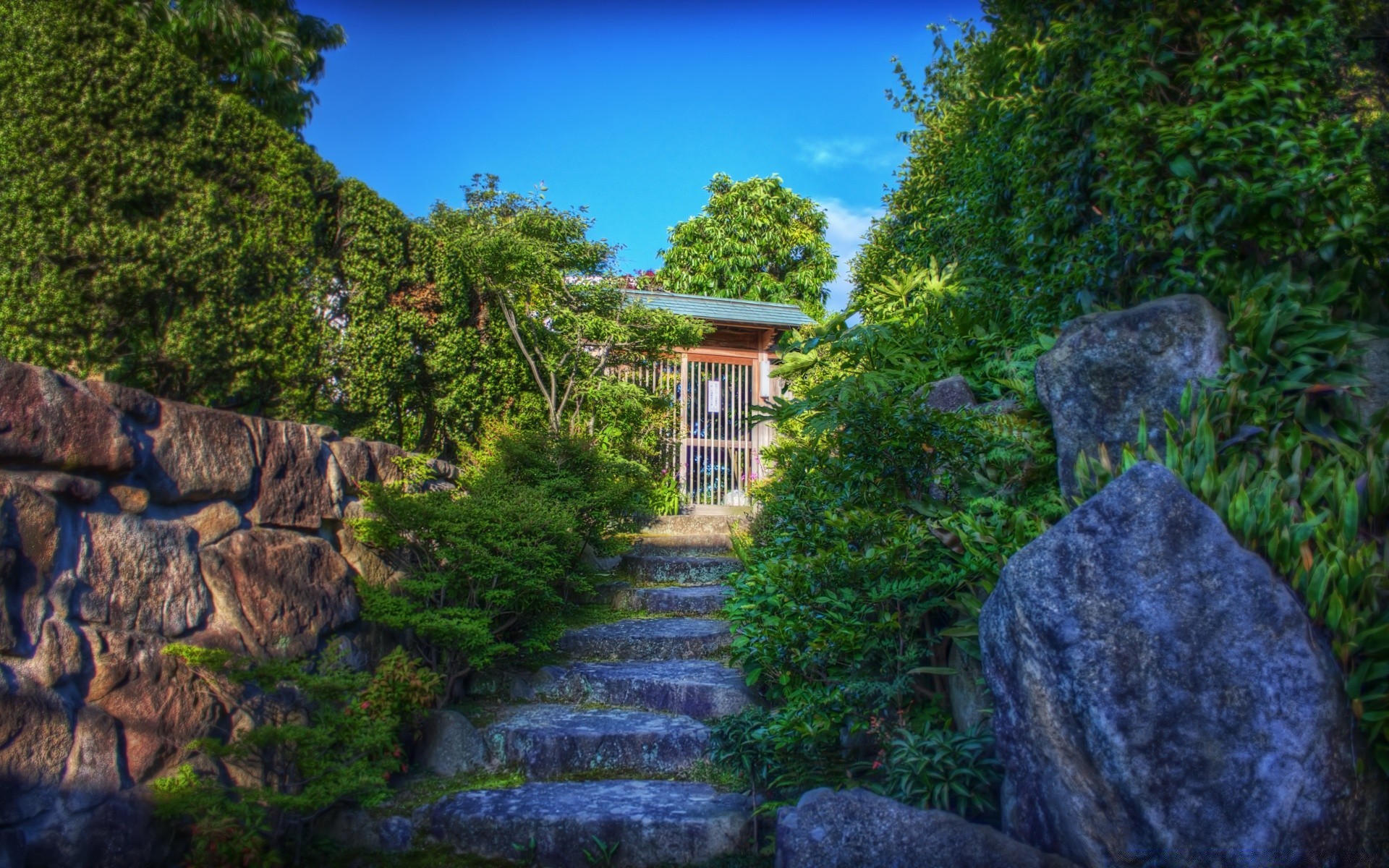 Ponte sul fiume e una casa verde sullo sfondo delle montagne