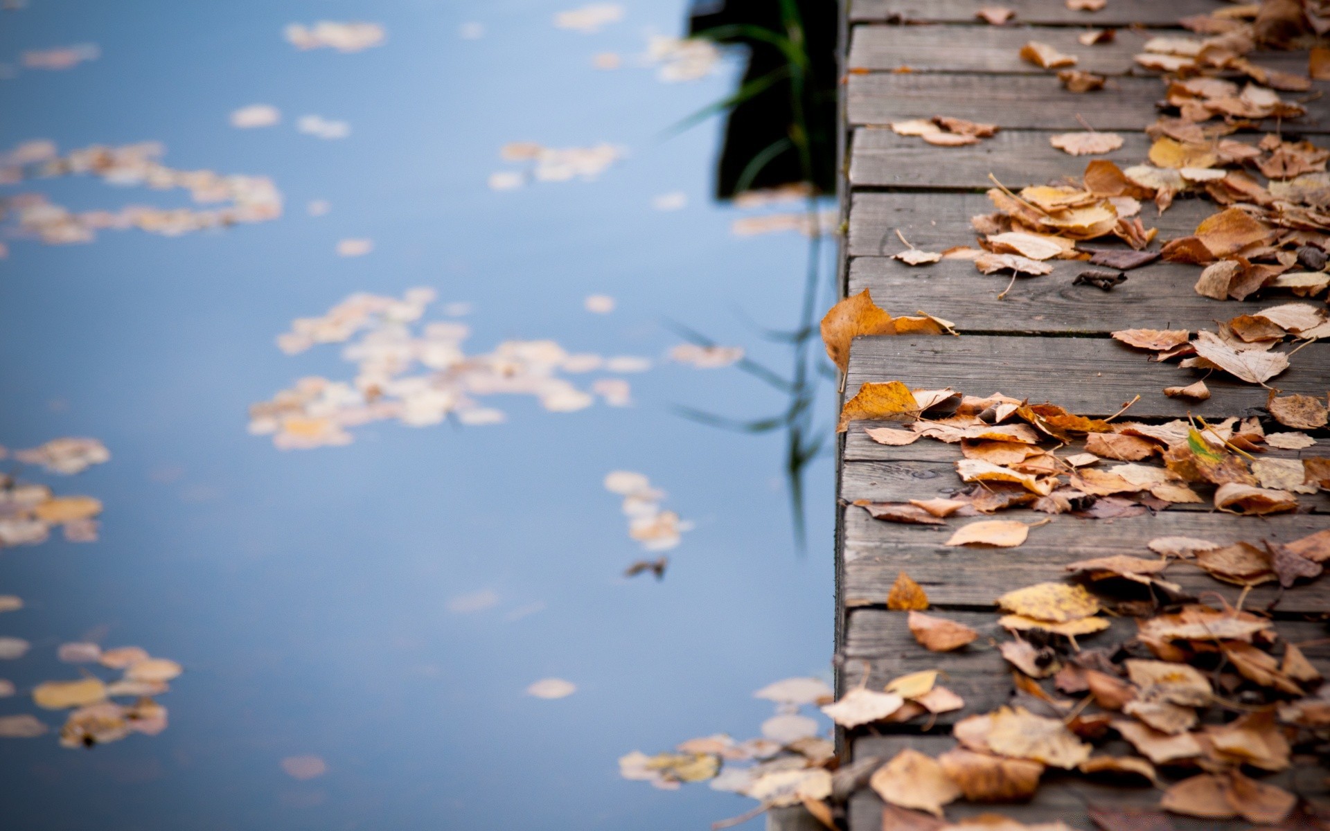 Foglie d'autunno sul ponte di legno