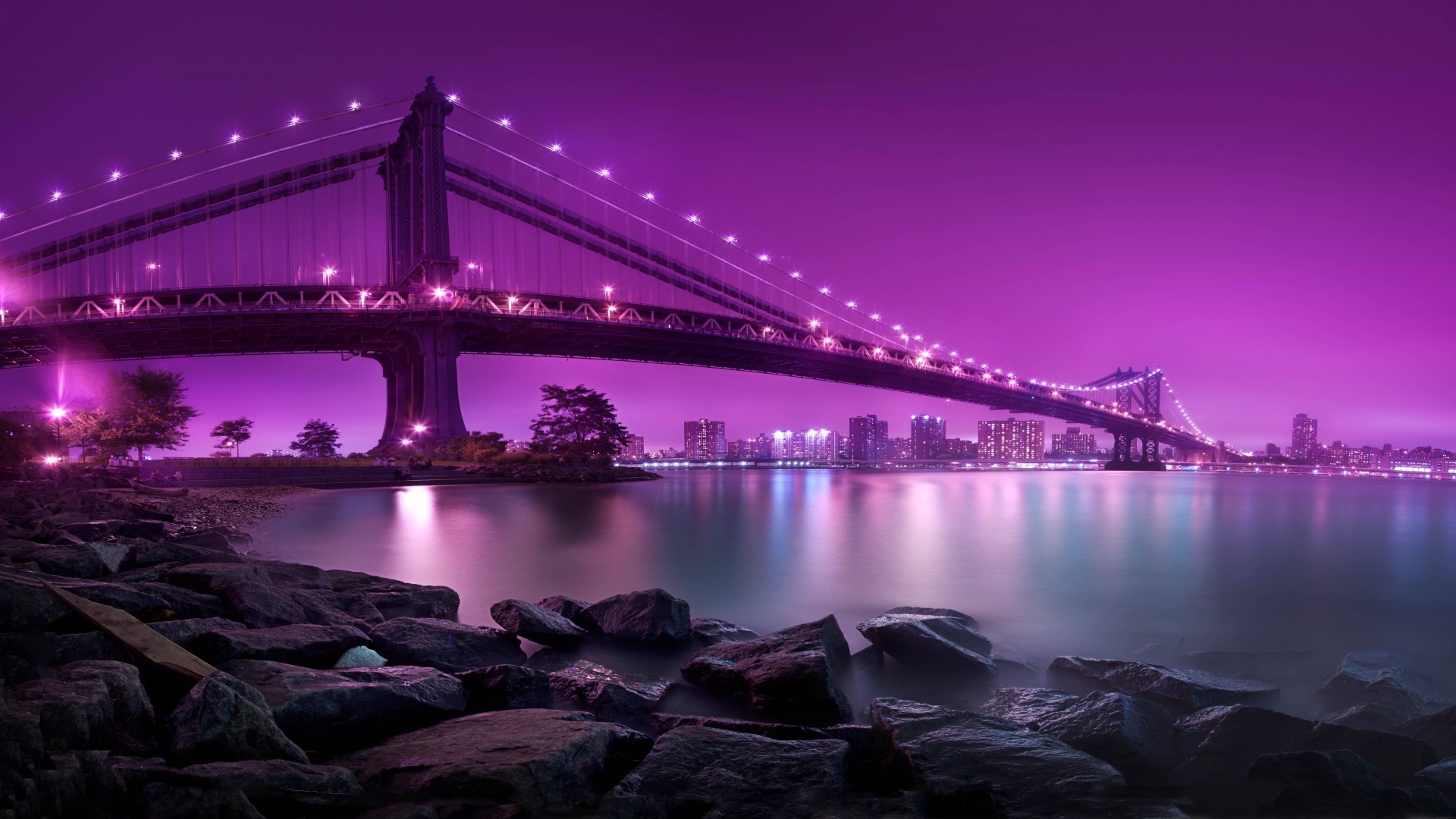 Ponte in America che taglia le acque sullo sfondo del tramonto