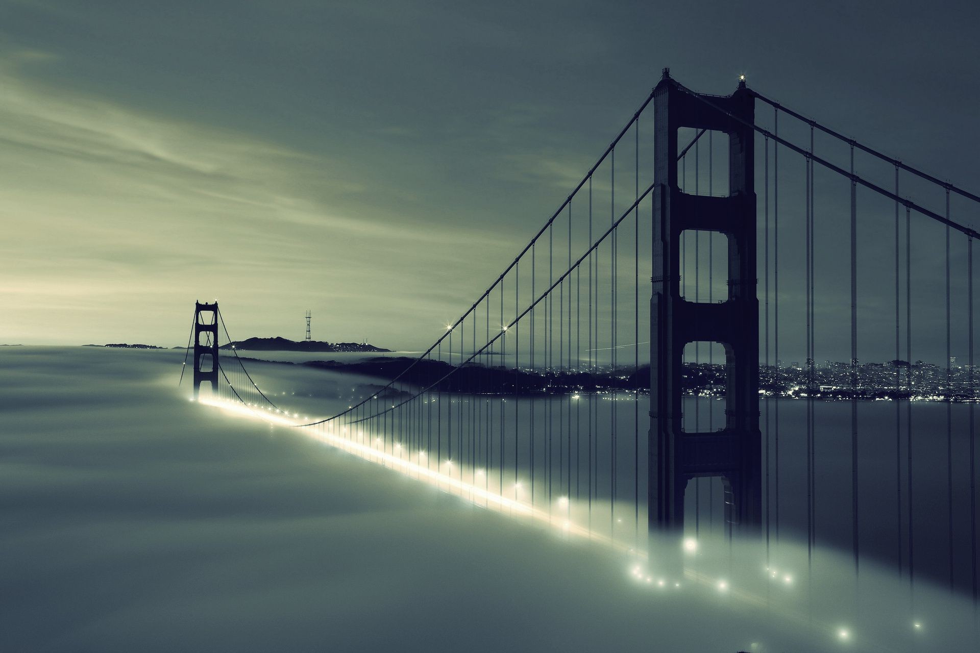 Vista serale del ponte illuminato sopra il fiume con nuvole nel cieloVista serale del ponte illuminato sopra il fiume con nuvole nel cielo