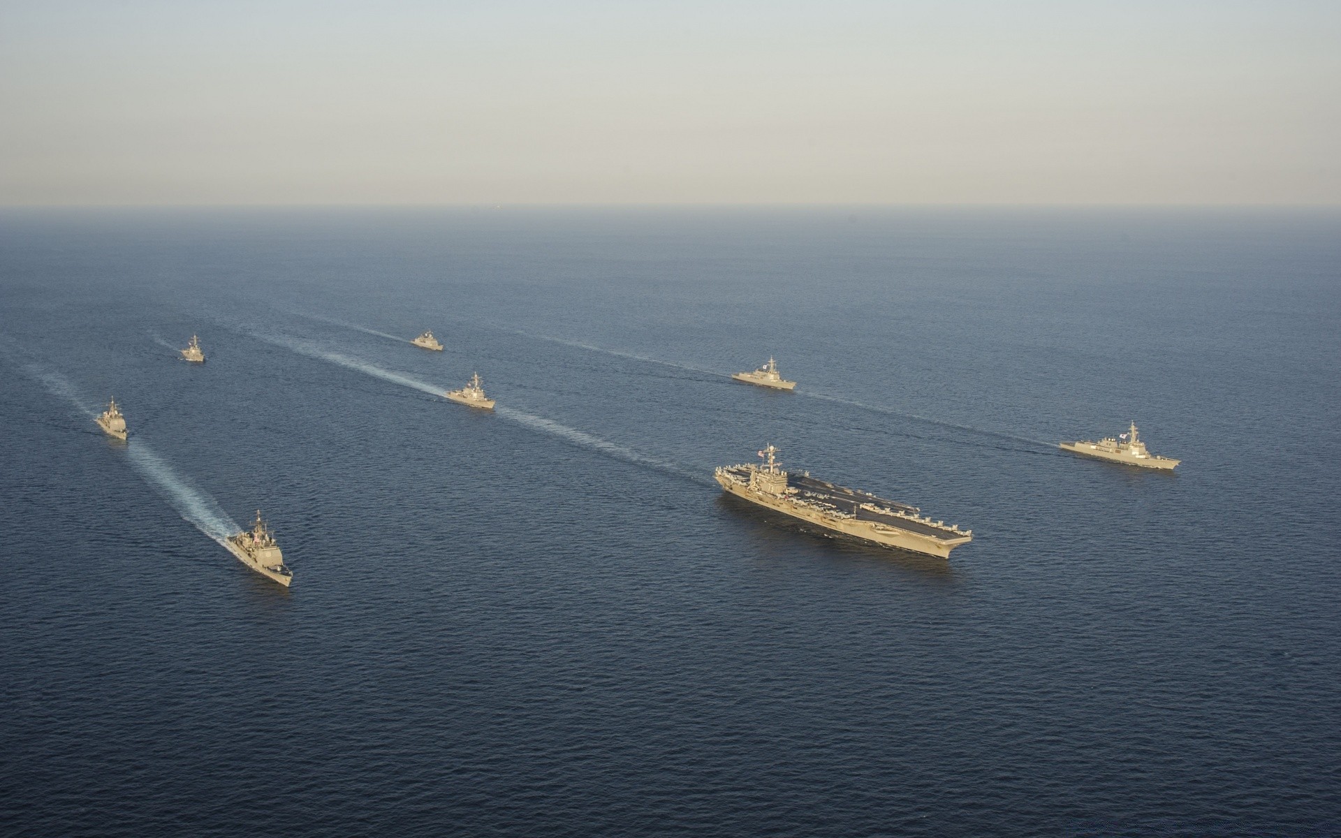 Navi da guerra nell'oceano sereno
