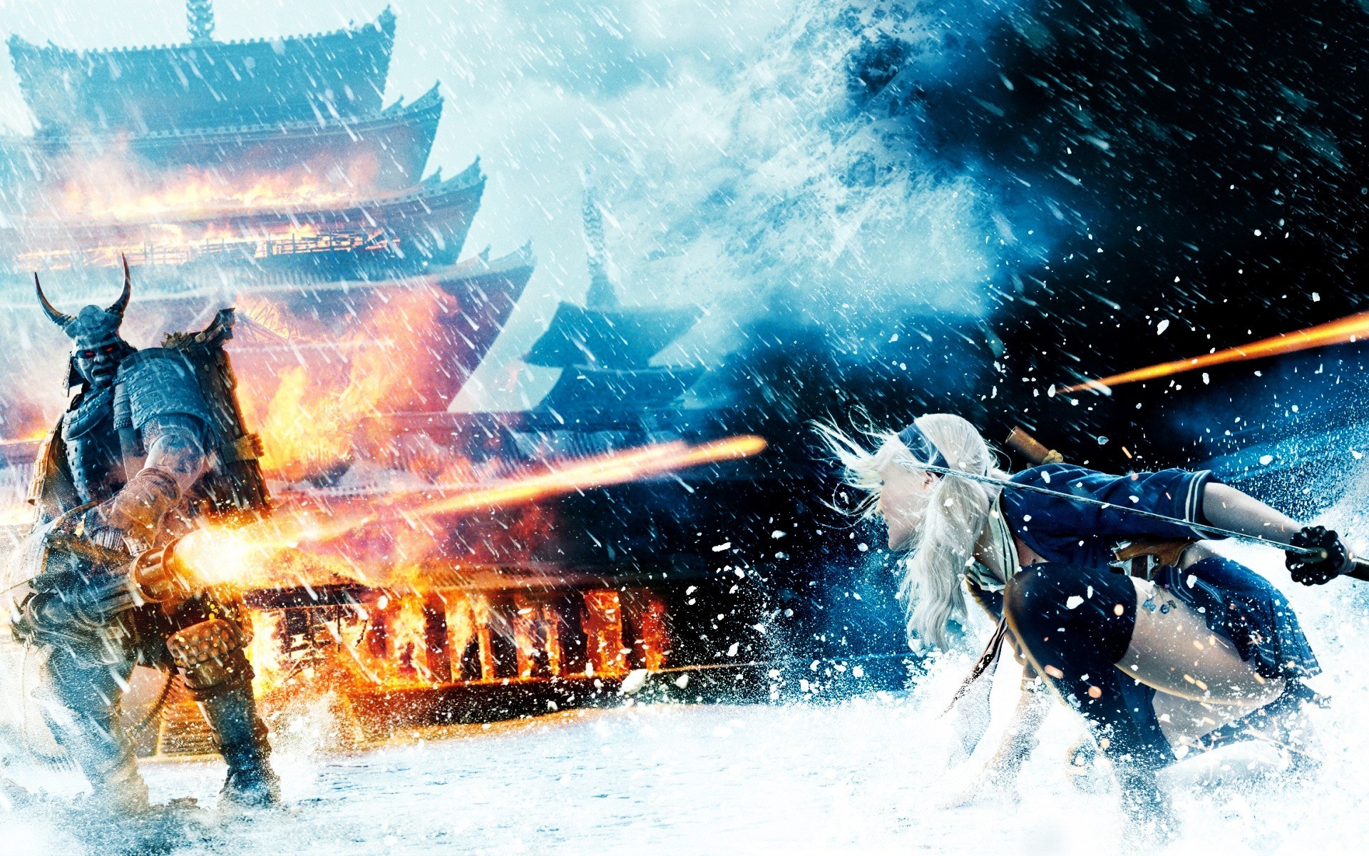 Lotta pericolosa di ghiaccio e fiamme